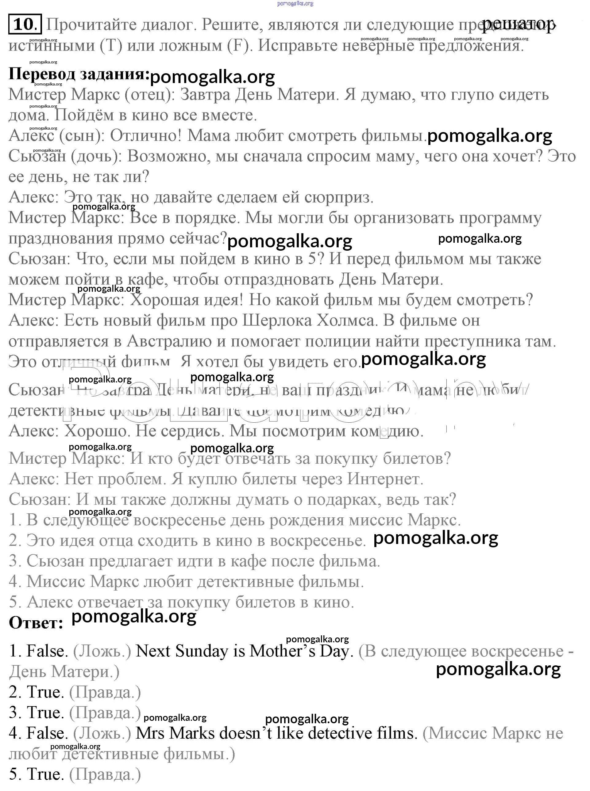 Готовые ответы - Английский язык 5 класс Enjoy English Биболетова М.З. - unit 2 10