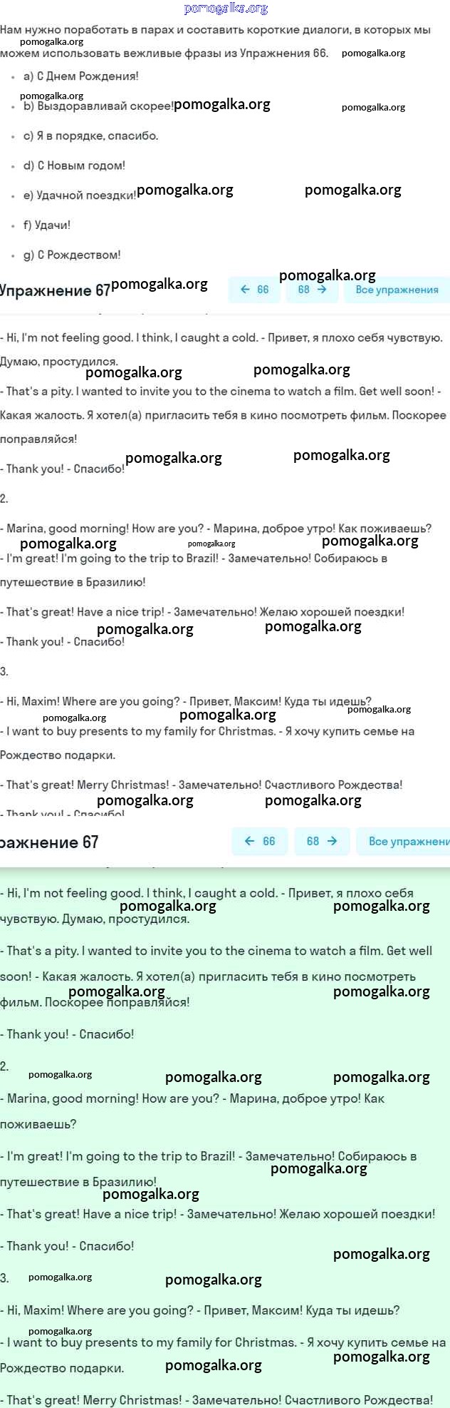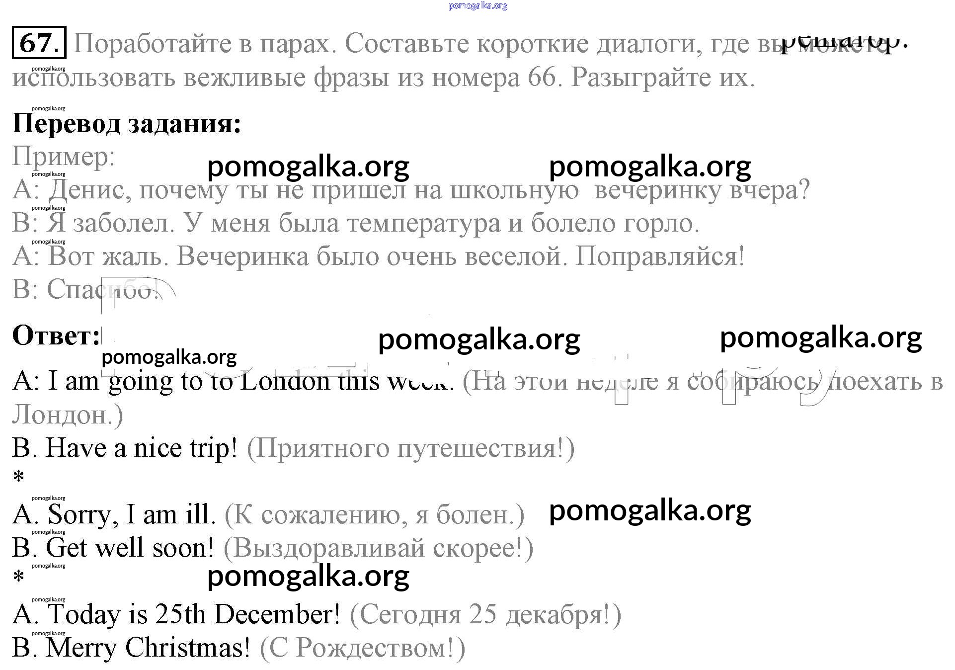 Готовые ответы - Английский язык 5 класс Enjoy English Биболетова М.З. - unit 2 67