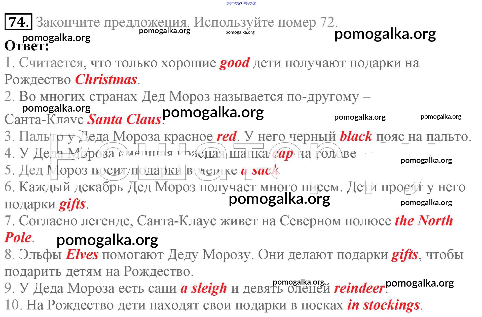 Готовые ответы - Английский язык 5 класс Enjoy English Биболетова М.З. - unit 2 74