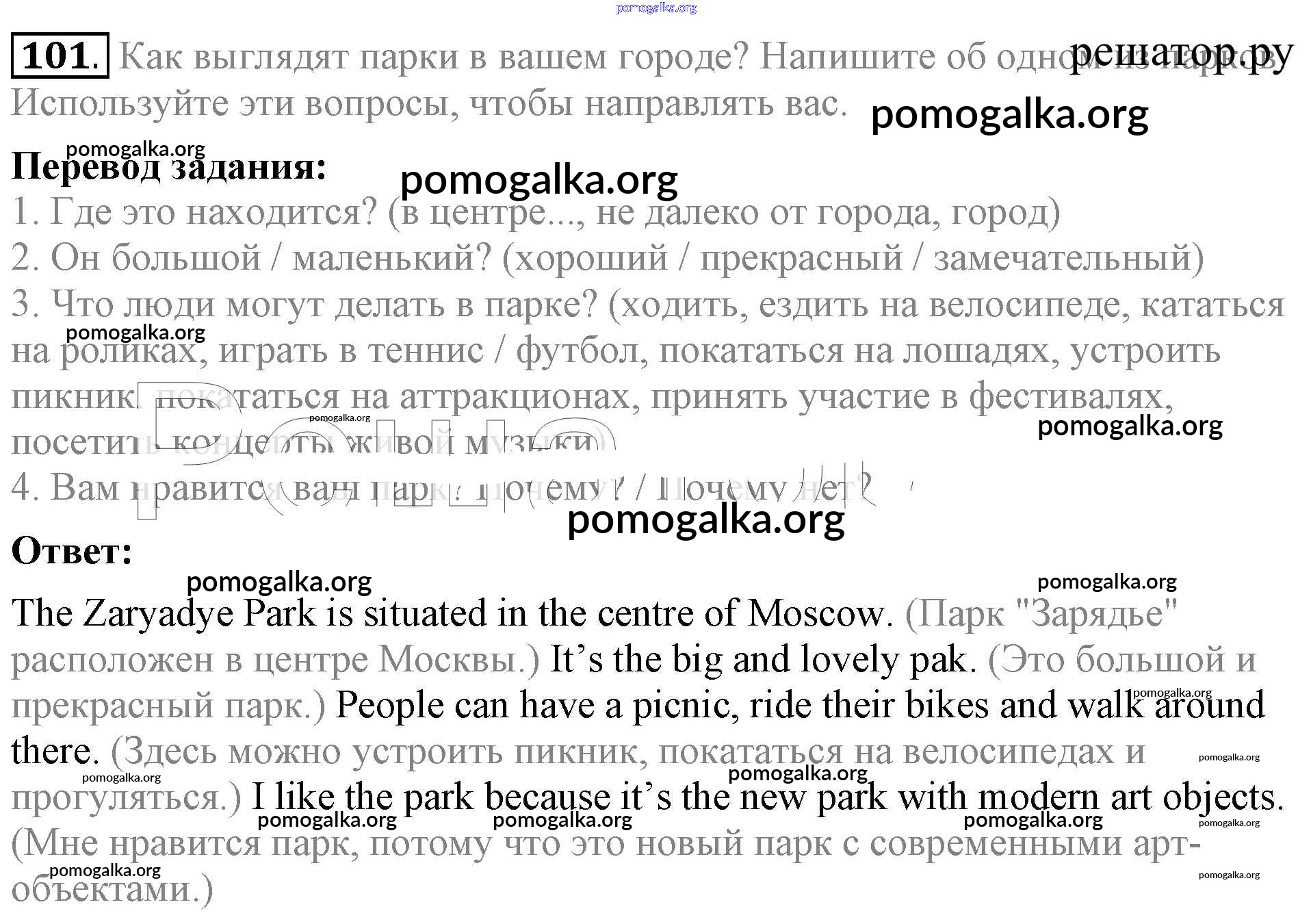 Готовые ответы - Английский язык 5 класс Enjoy English Биболетова М.З. - unit 3 101
