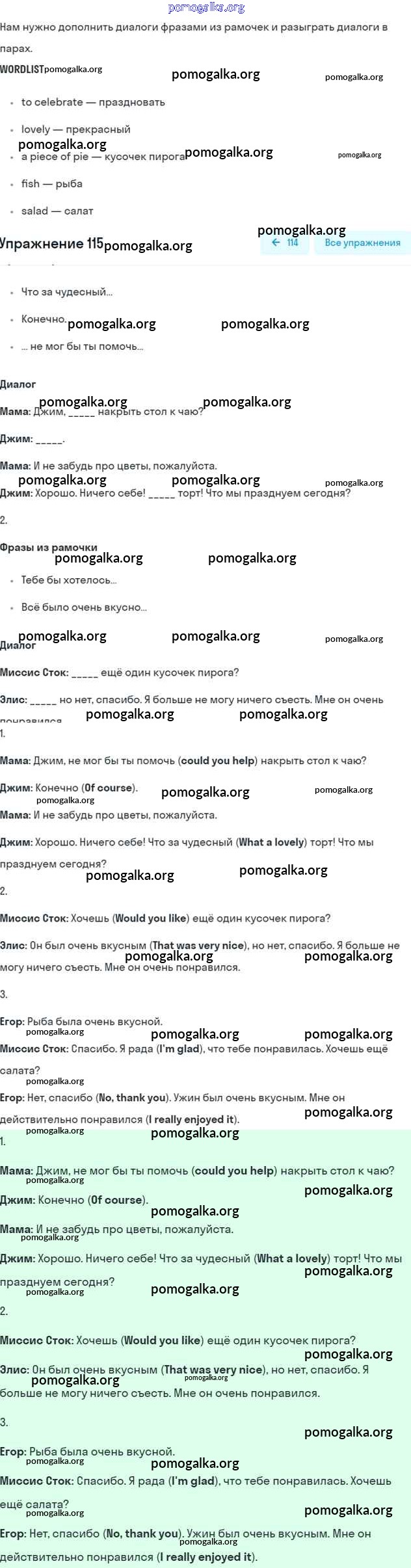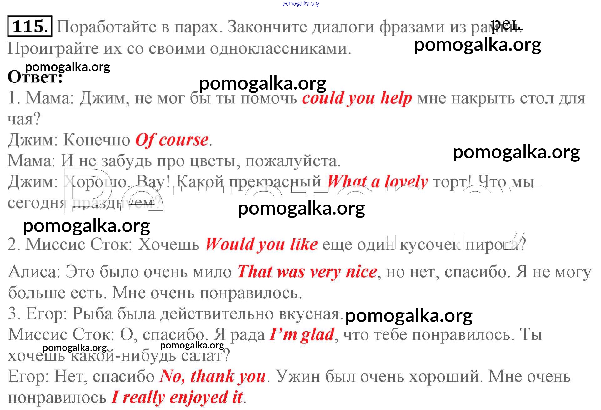 Готовые ответы - Английский язык 5 класс Enjoy English Биболетова М.З. - unit 3 115