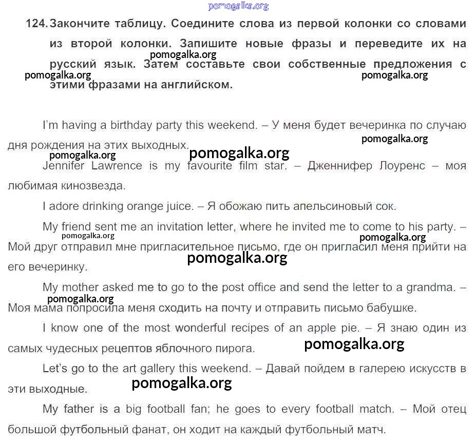 Готовые ответы - Английский язык 5 класс Enjoy English Биболетова М.З. - unit 3 124