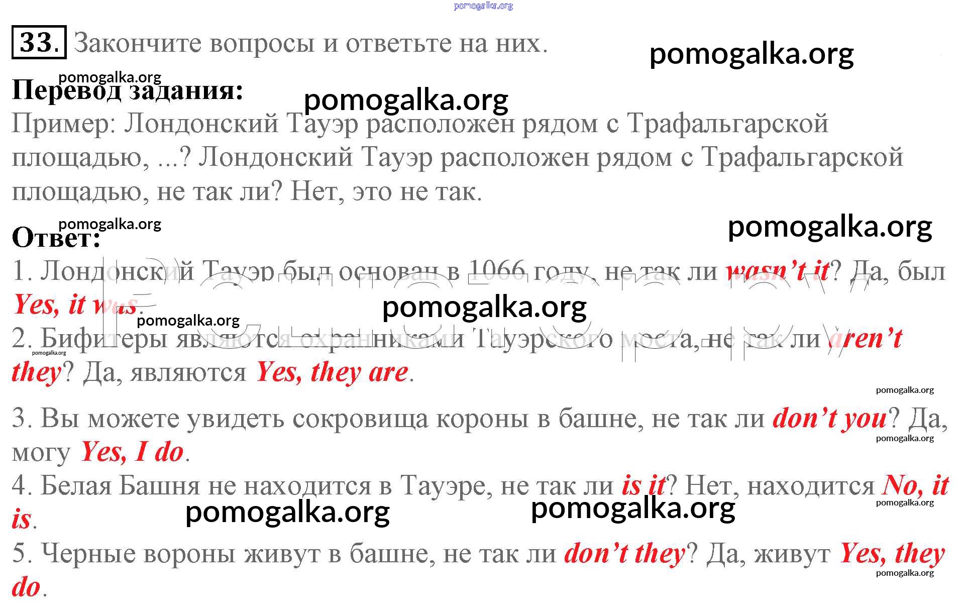 Готовые ответы - Английский язык 5 класс Enjoy English Биболетова М.З. - unit 3 33