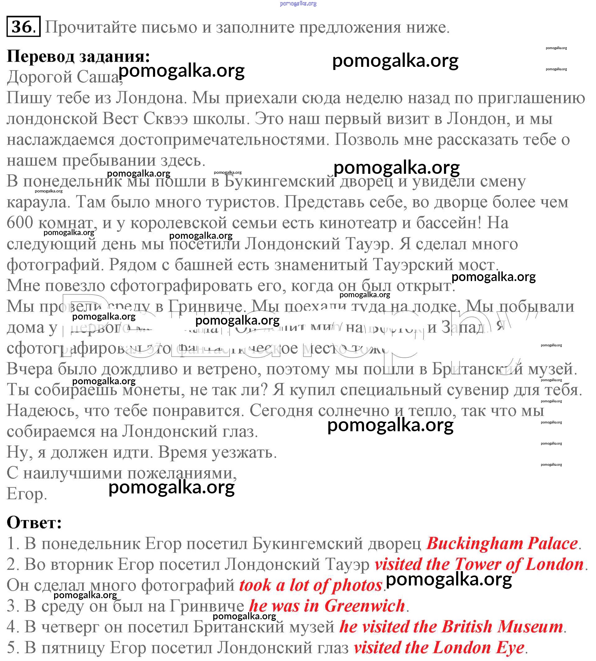Готовые ответы - Английский язык 5 класс Enjoy English Биболетова М.З. - unit 3 36