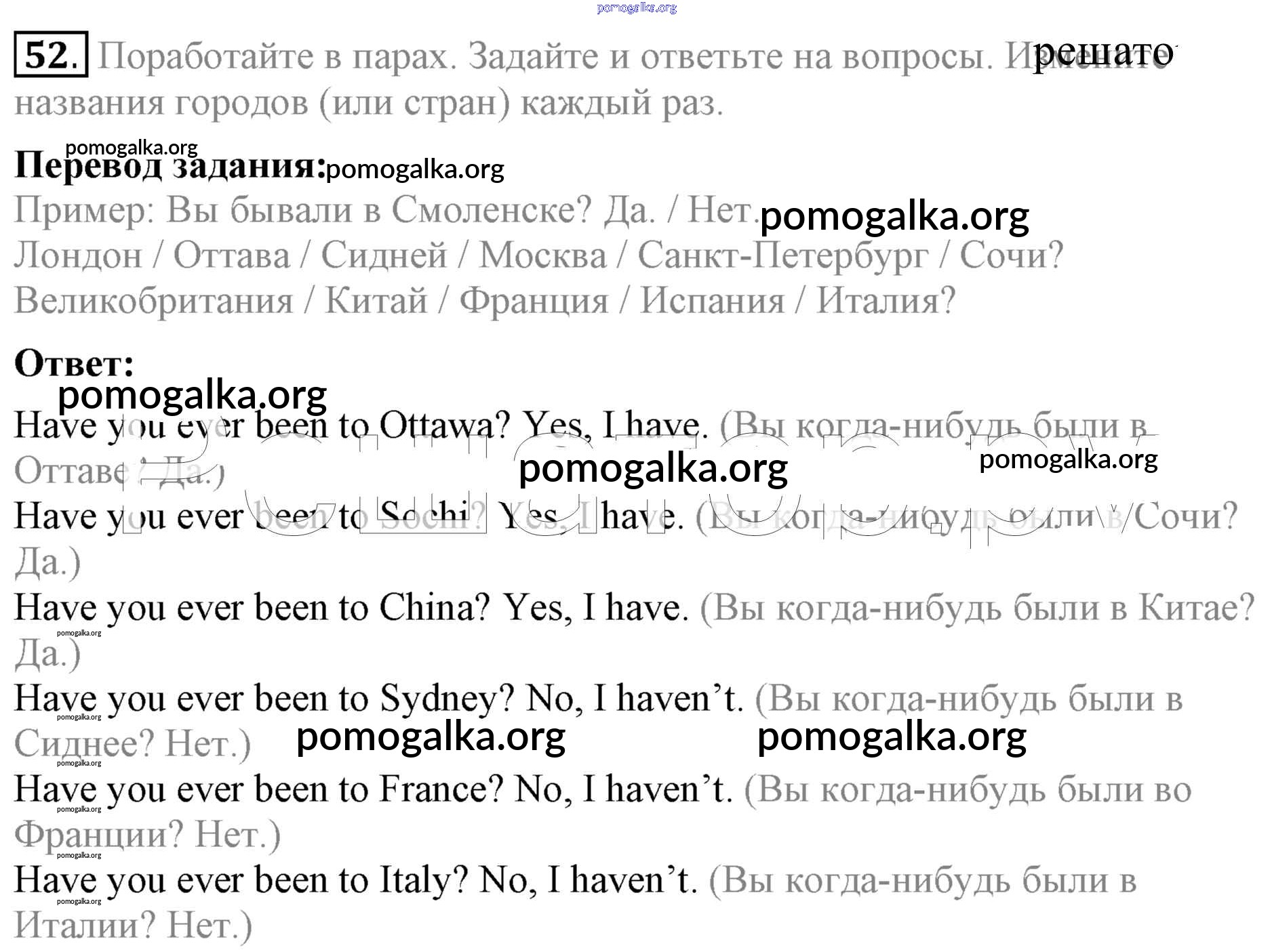 Готовые ответы - Английский язык 5 класс Enjoy English Биболетова М.З. - unit 3 52