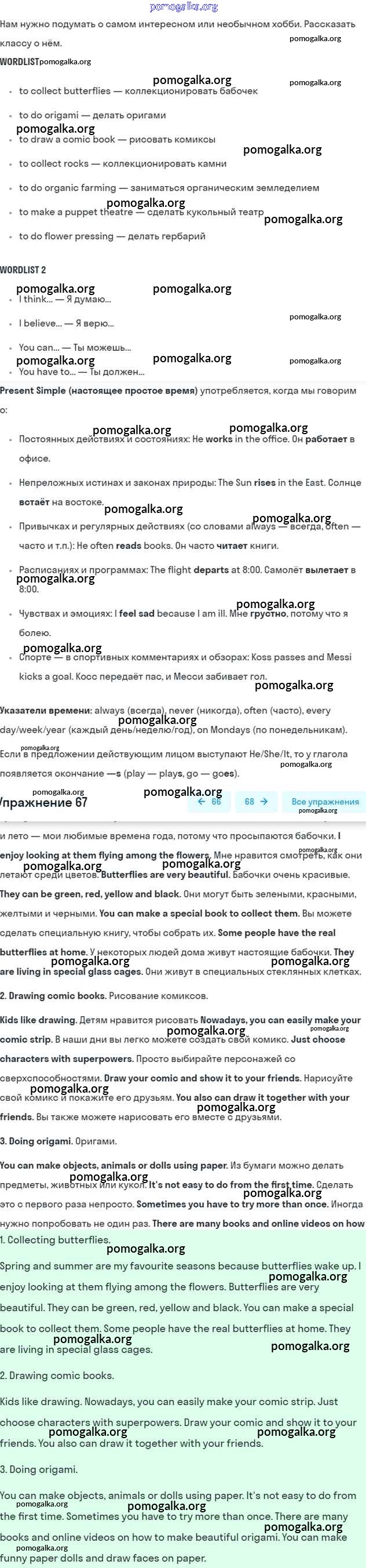 Готовые ответы - Английский язык 5 класс Enjoy English Биболетова М.З. - unit 4 67