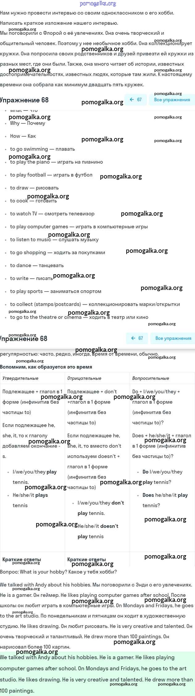 Готовые ответы - Английский язык 5 класс Enjoy English Биболетова М.З. - unit 4 68