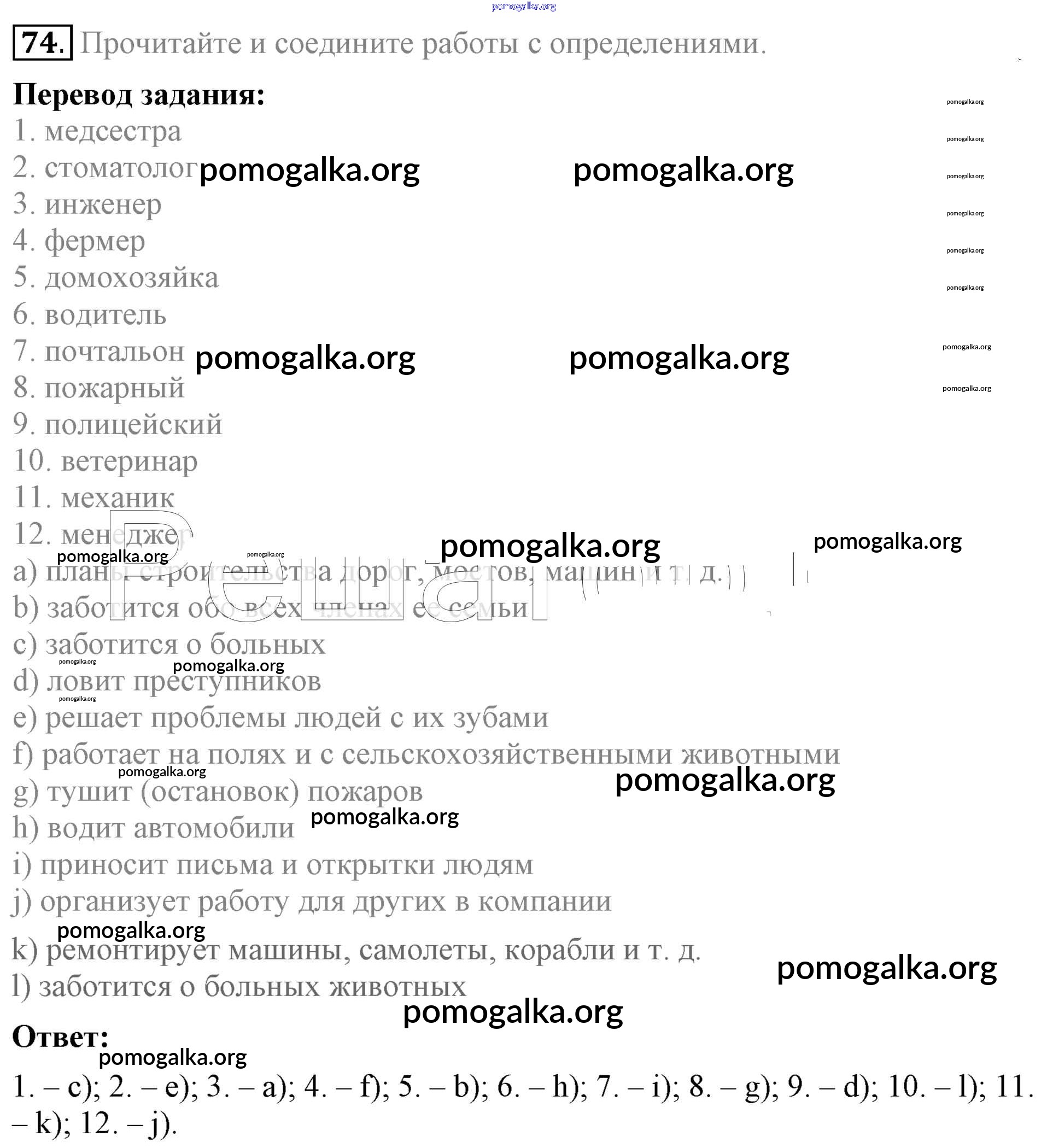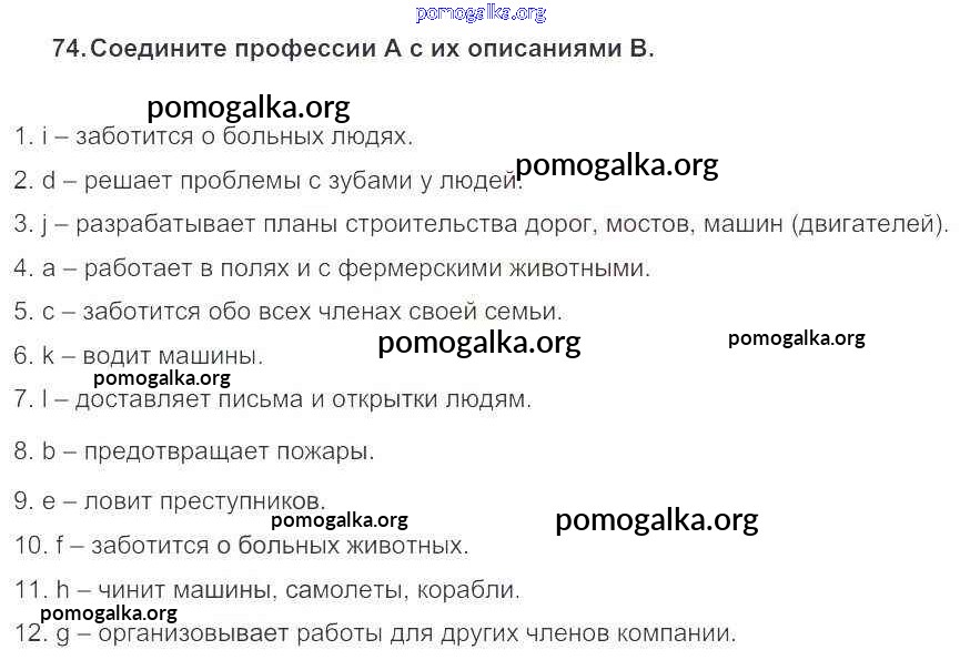 Готовые ответы - Английский язык 5 класс Enjoy English Биболетова М.З. - unit 4 74