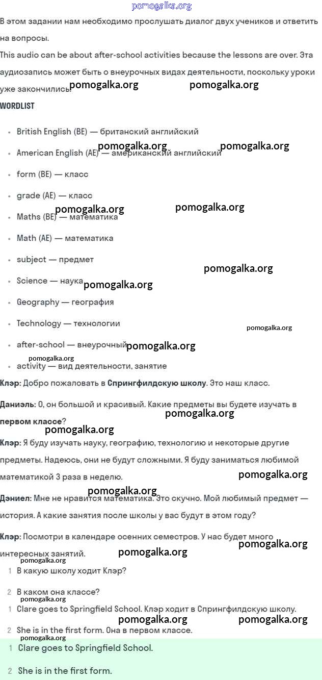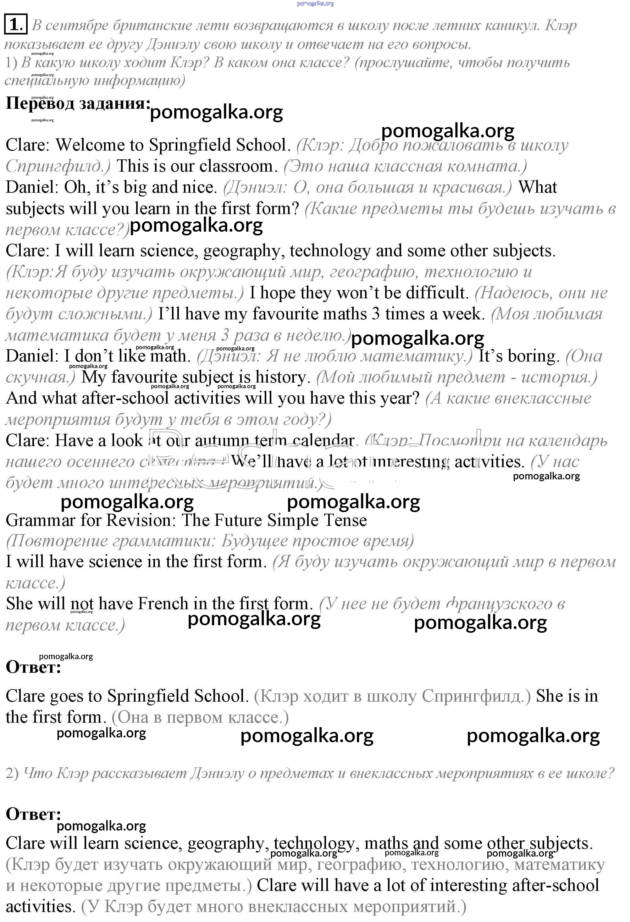 Готовые ответы - Английский язык 5 класс Кузовлев В.П. - lesson 4 unit 1 1