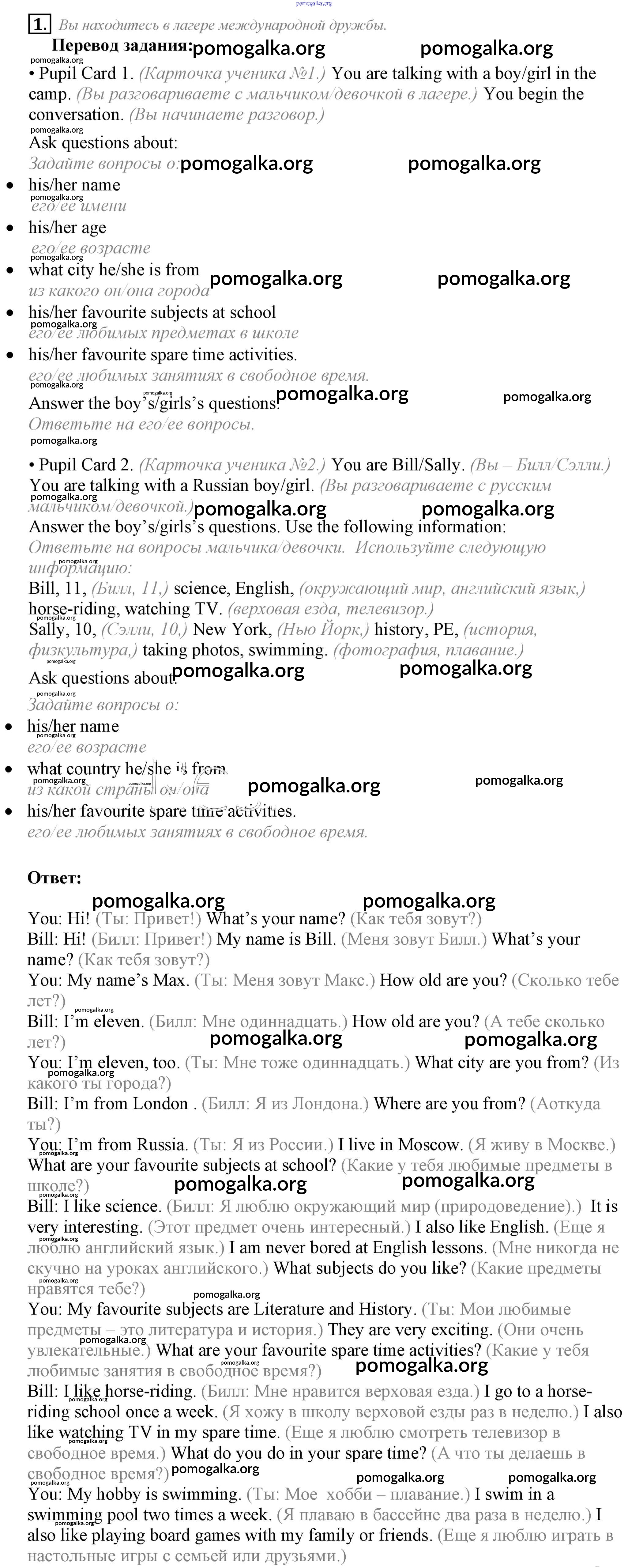Готовые ответы - Английский язык 5 класс Кузовлев В.П. - lesson 7-8 unit 1 1