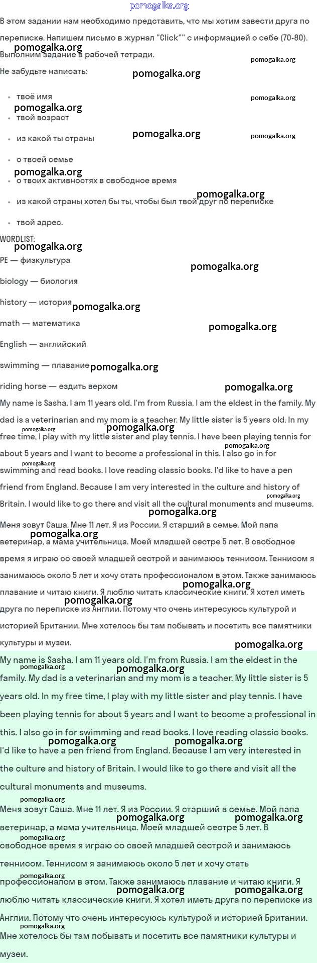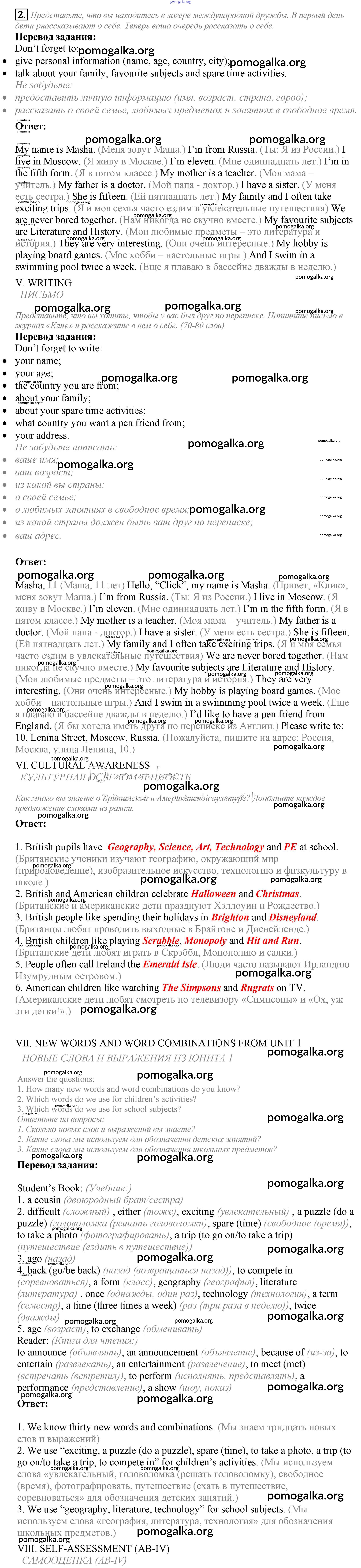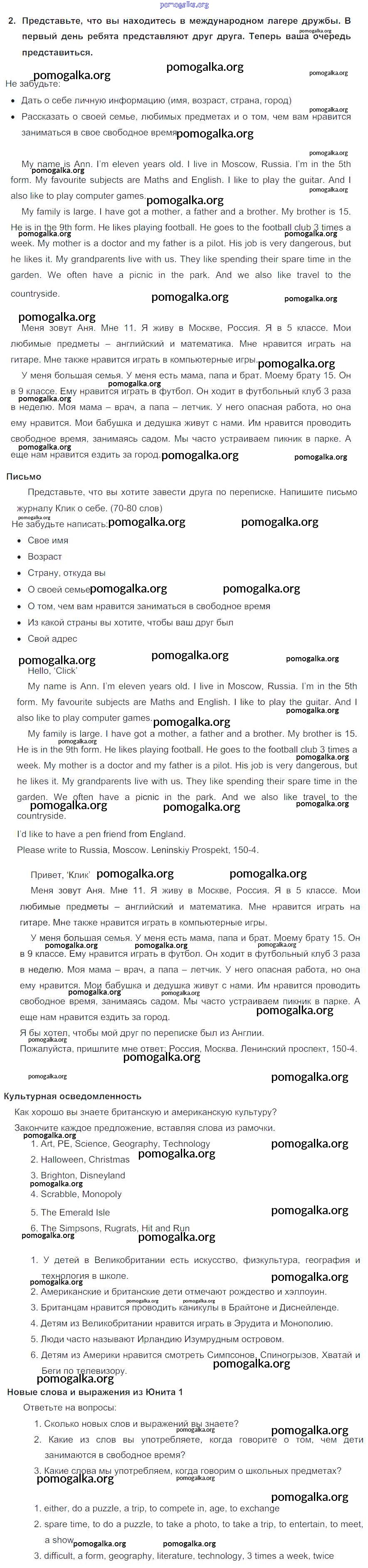Готовые ответы - Английский язык 5 класс Кузовлев В.П. - lesson 7-8 unit 1 2