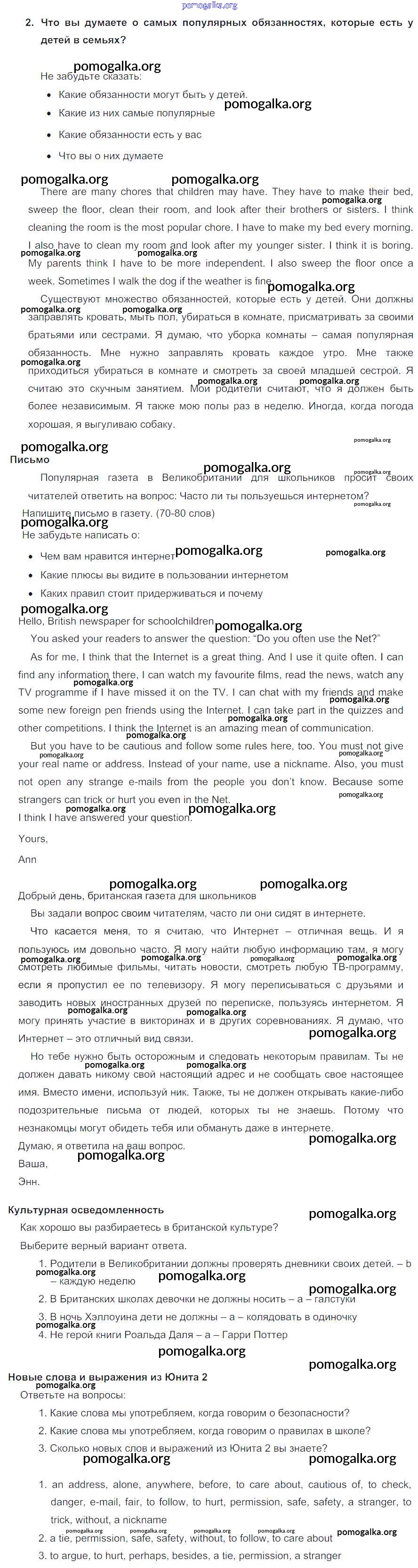 Готовые ответы - Английский язык 5 класс Кузовлев В.П. - lesson 6-7 unit 2 2