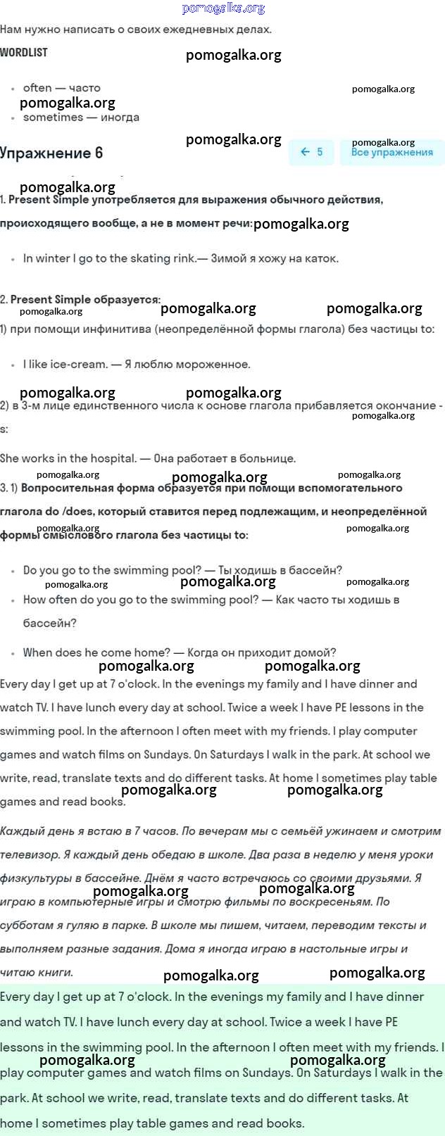 Готовые ответы - Английский язык 5 класс Кузовлев В.П. - lesson 1 unit 4 6