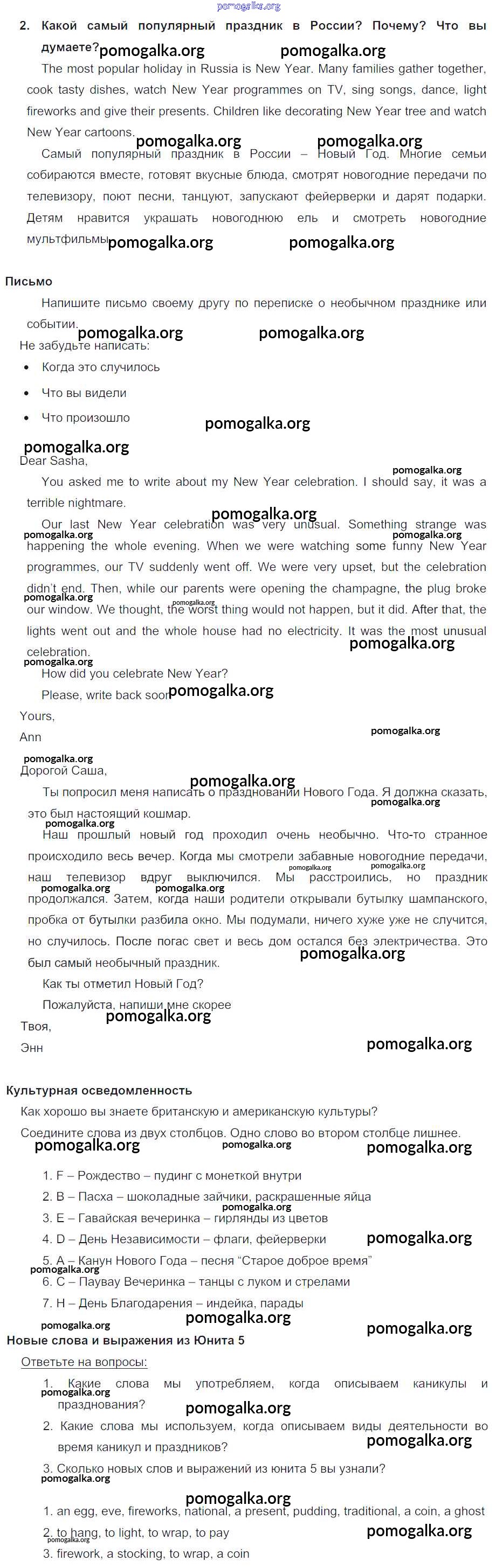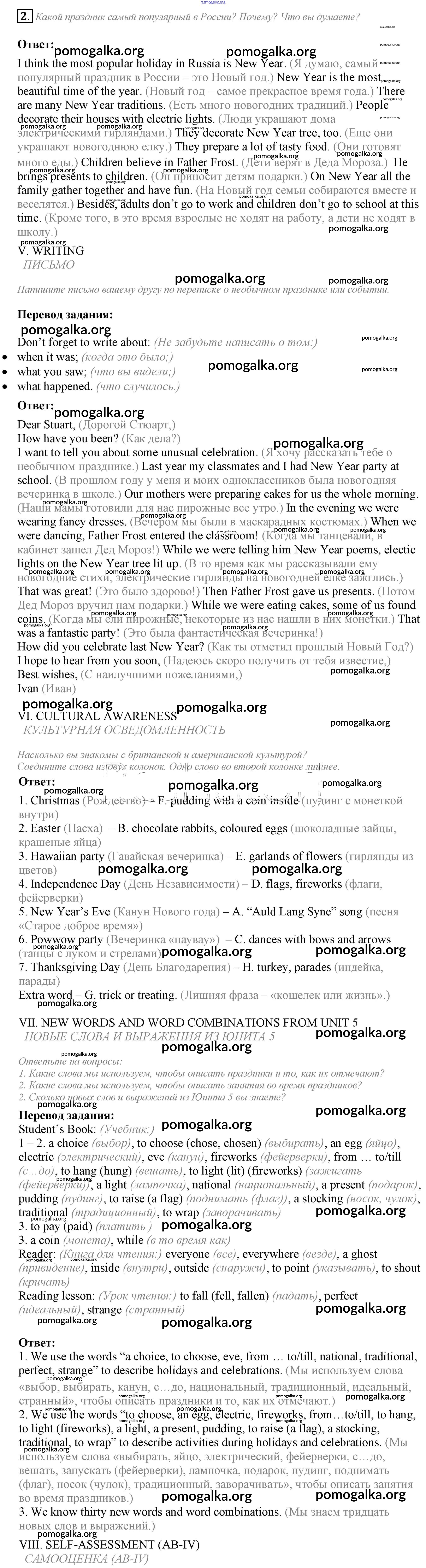 Готовые ответы - Английский язык 5 класс Кузовлев В.П. - lesson 7-8 unit 5 2