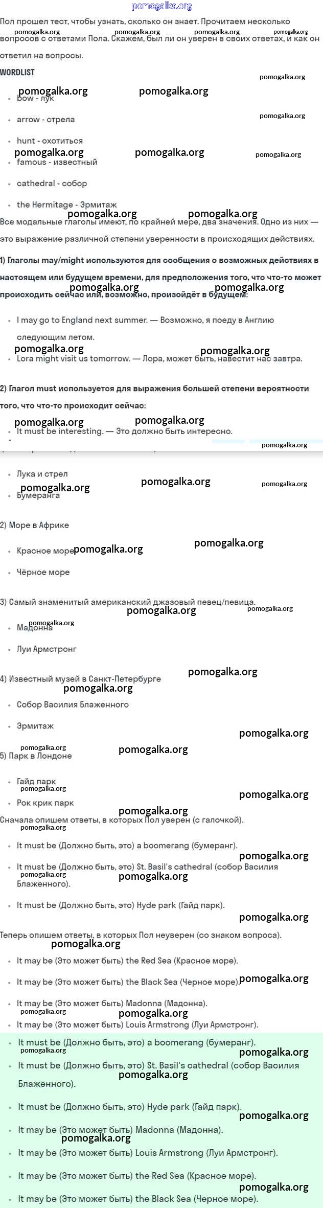 Готовые ответы - Английский язык 5 класс Кузовлев В.П. - consolidation lesson unit 2 4