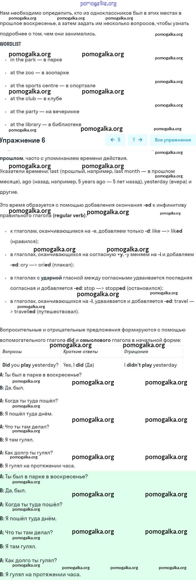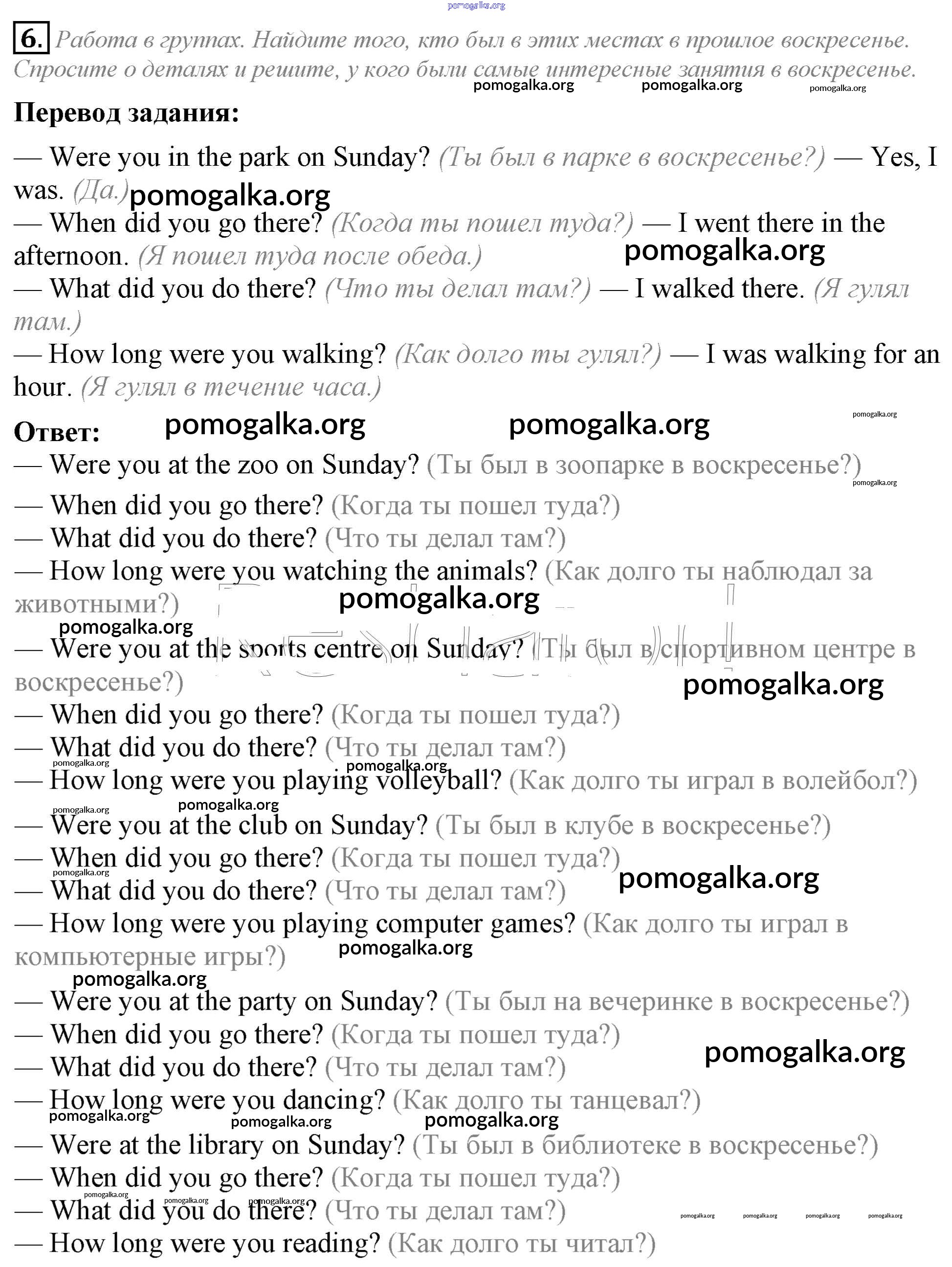 Готовые ответы - Английский язык 5 класс Кузовлев В.П. - lesson 2 unit 6 6