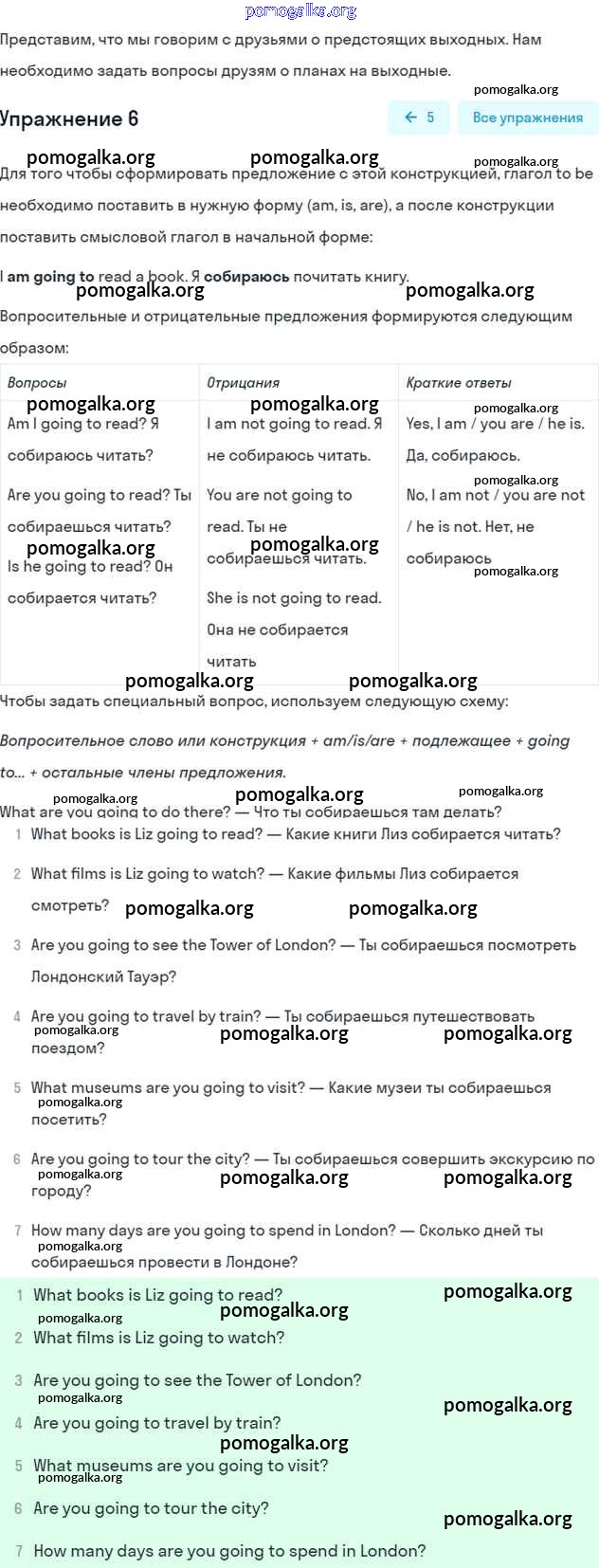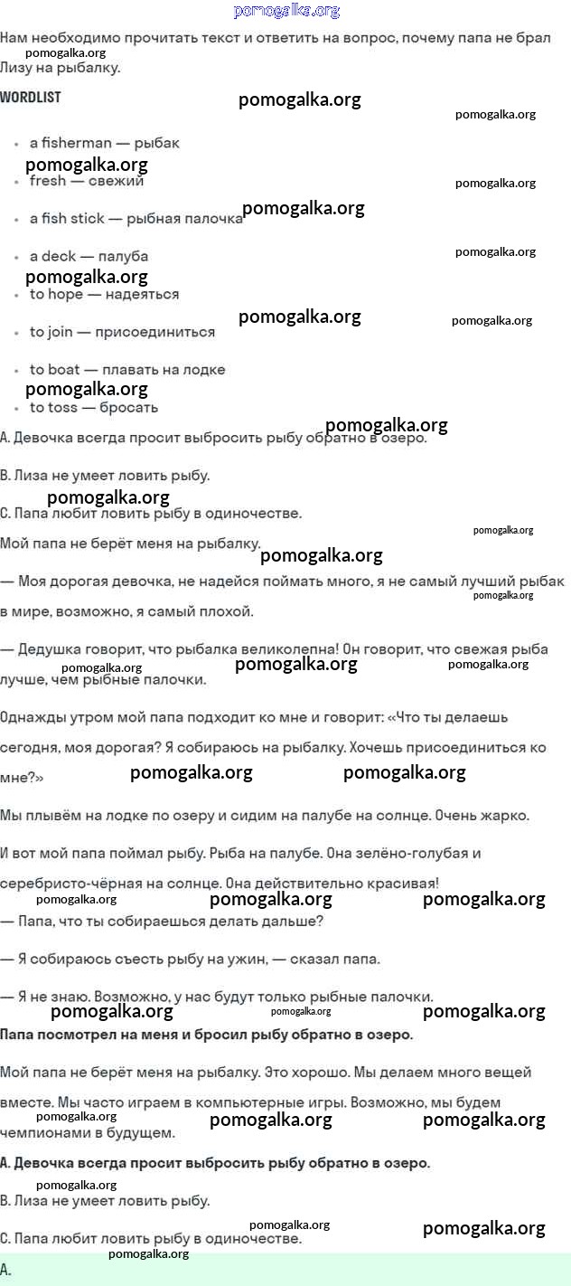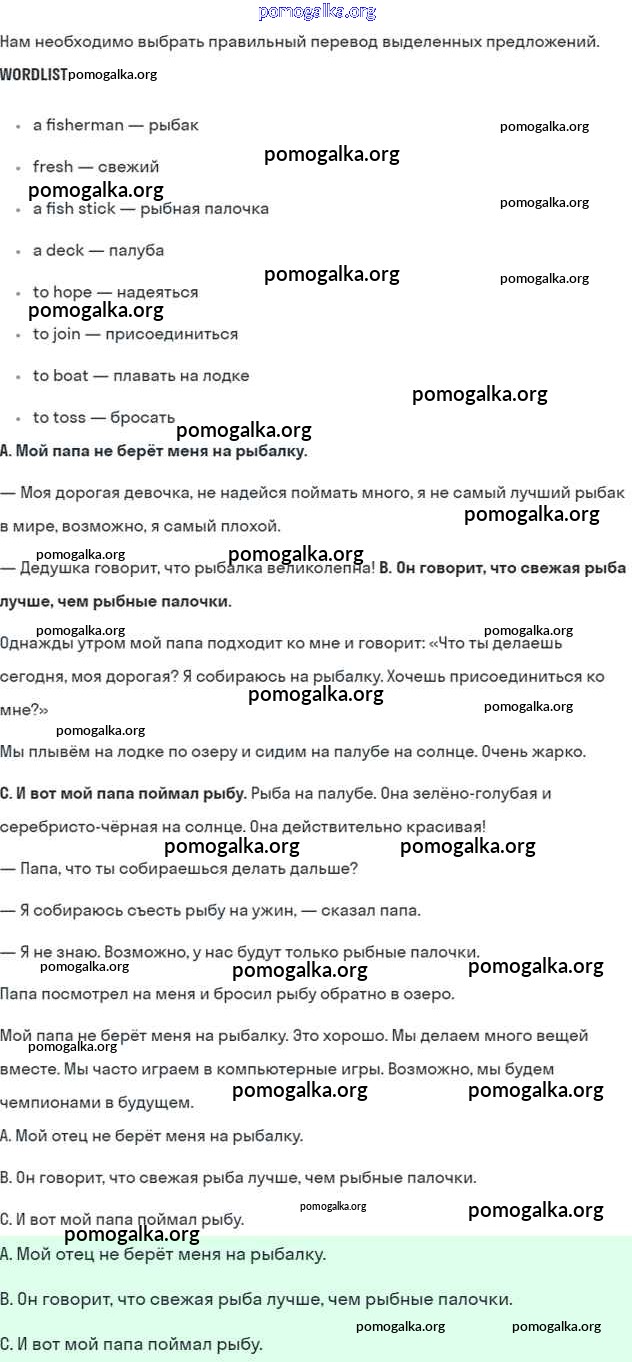 Готовые ответы - Английский язык 5 класс Кузовлев В.П. - lesson 2 unit 7 6