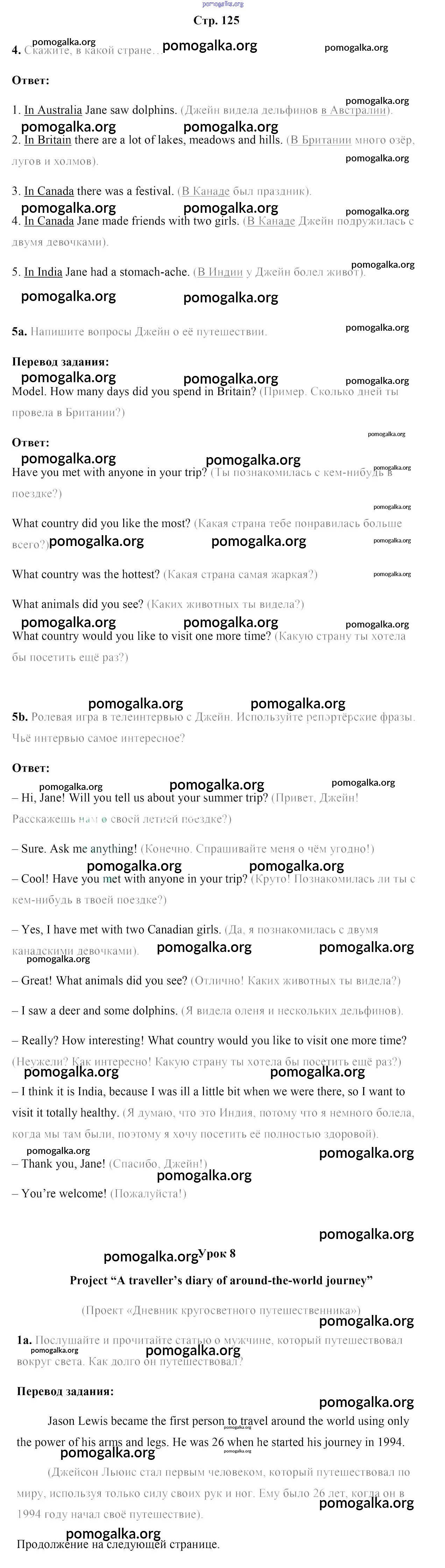 Готовые ответы - Английский язык 5 класс Лапицкая Л.М. - часть 2. страница 125
