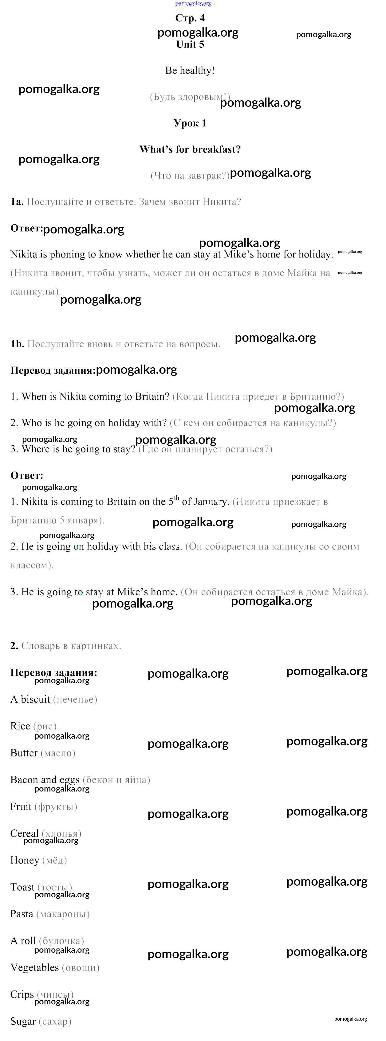 Готовые ответы - Английский язык 5 класс Лапицкая Л.М. - часть 2. страница 4