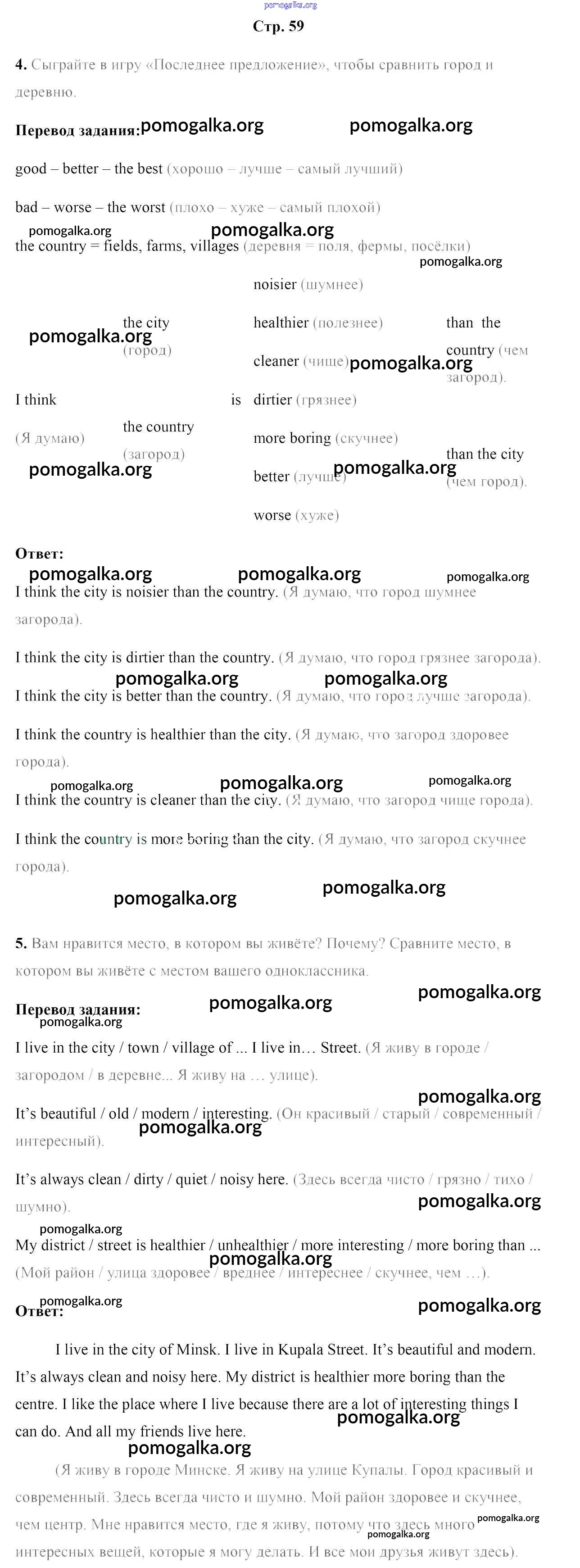 Готовые ответы - Английский язык 5 класс Лапицкая Л.М. - часть 2. страница 59