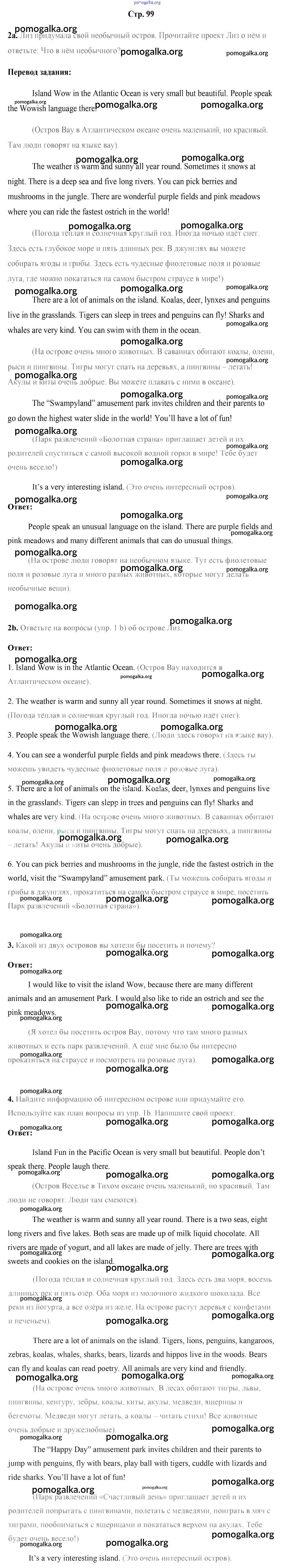 Готовые ответы - Английский язык 5 класс Лапицкая Л.М. - часть 2. страница 99