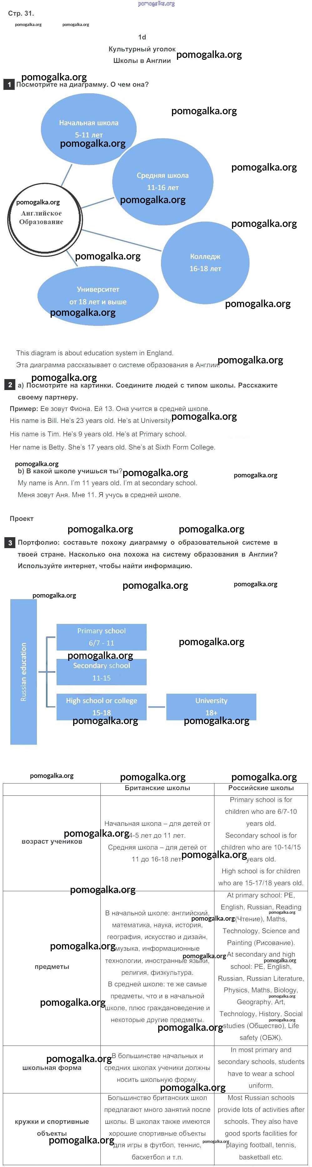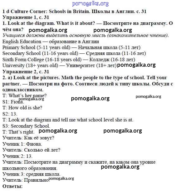 Готовые ответы - Английский язык 5 класс Spotlight Ваулина Ю.Е. - module 1 стр. 31