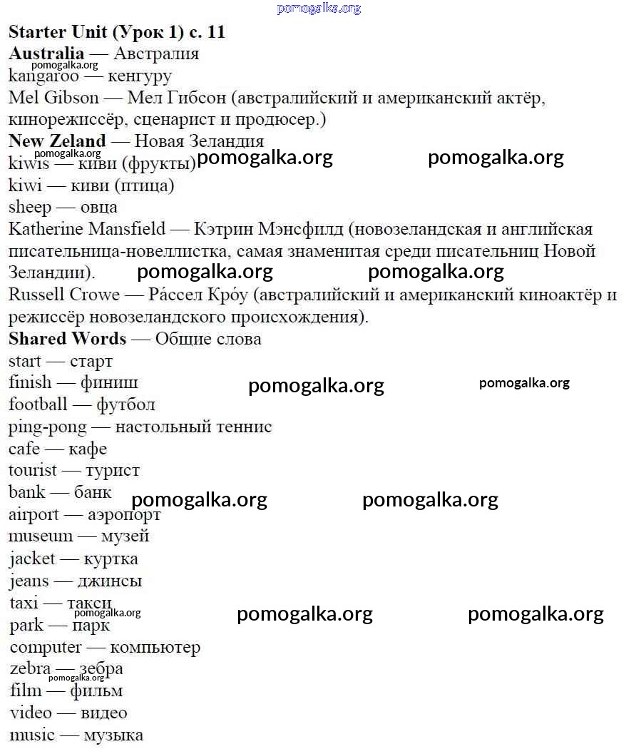 Готовые ответы - Английский язык 5 класс Spotlight Ваулина Ю.Е. - Starter Unit стр. 11