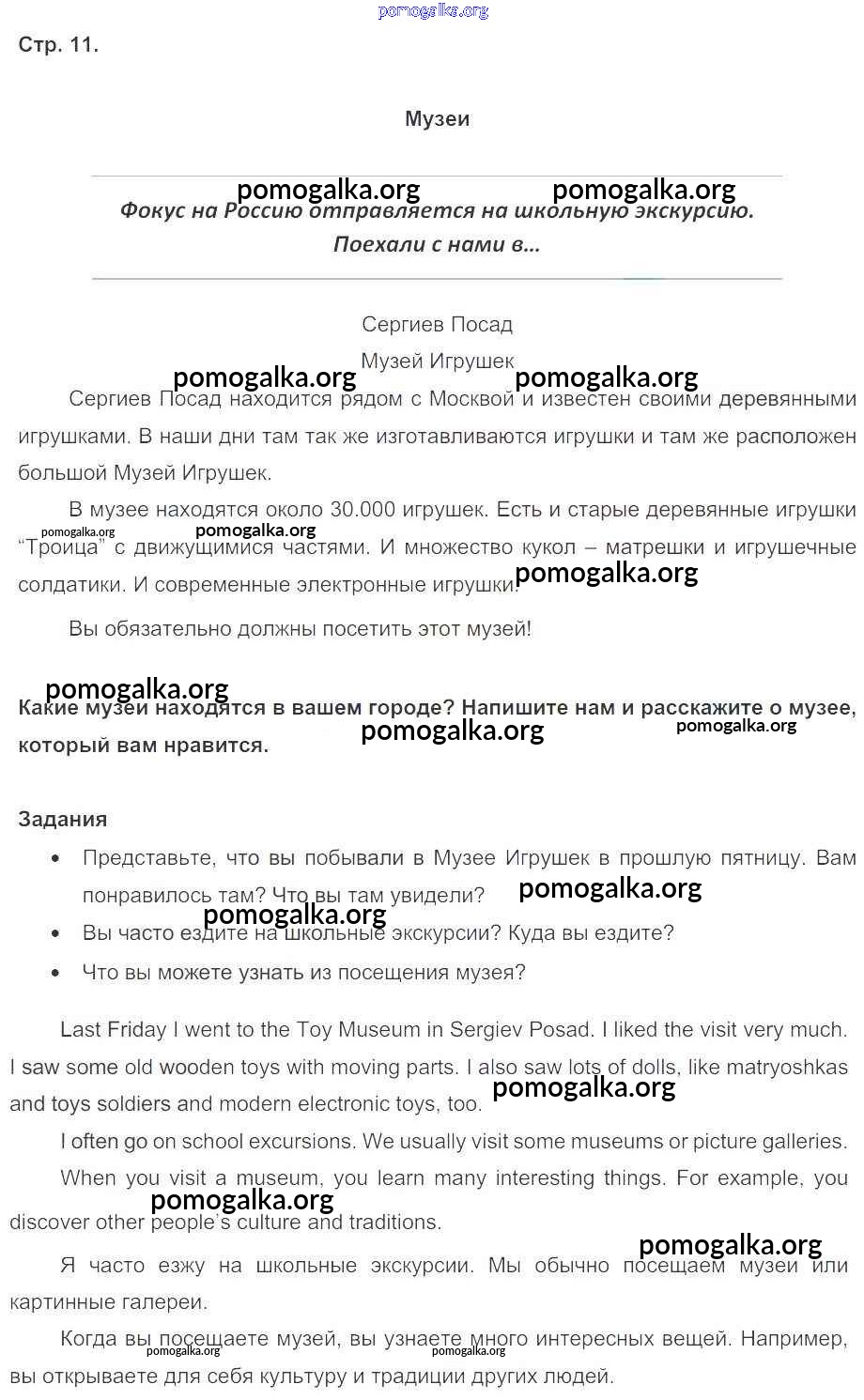 Готовые ответы - Английский язык 5 класс Spotlight Ваулина Ю.Е. - spotlight on Russia стр. 11