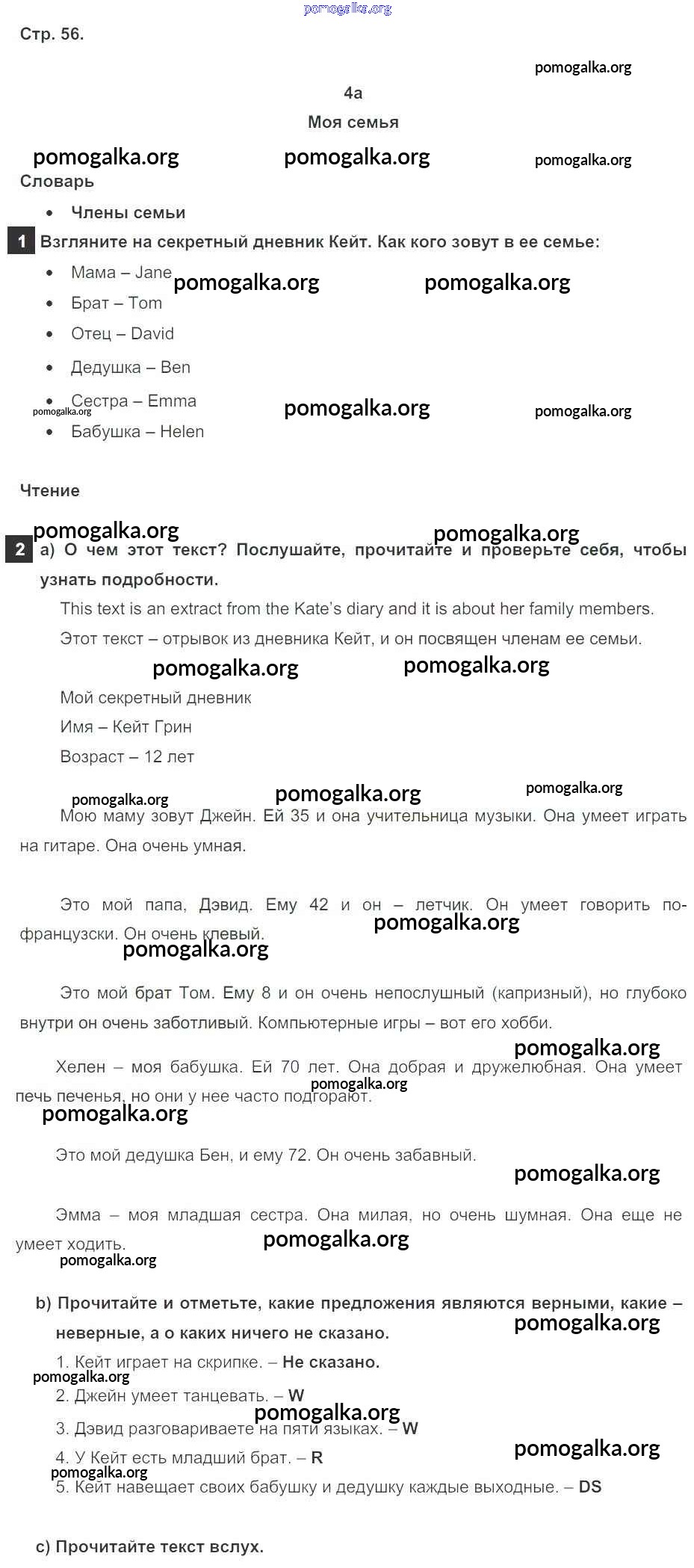 Готовые ответы - Английский язык 5 класс Spotlight Ваулина Ю.Е. - module 4 стр. 56