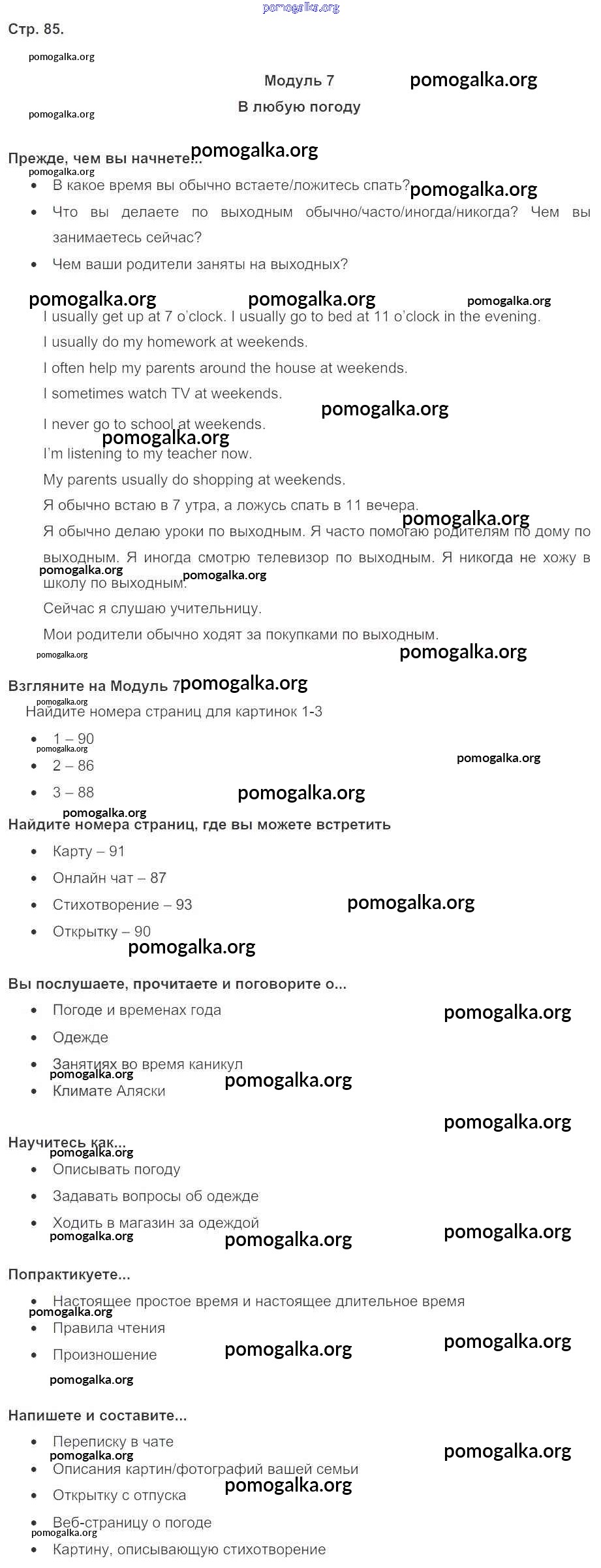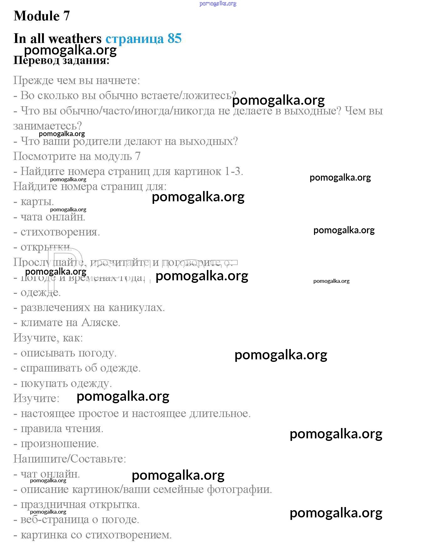 Готовые ответы - Английский язык 5 класс Spotlight Ваулина Ю.Е. - module 7 стр. 85