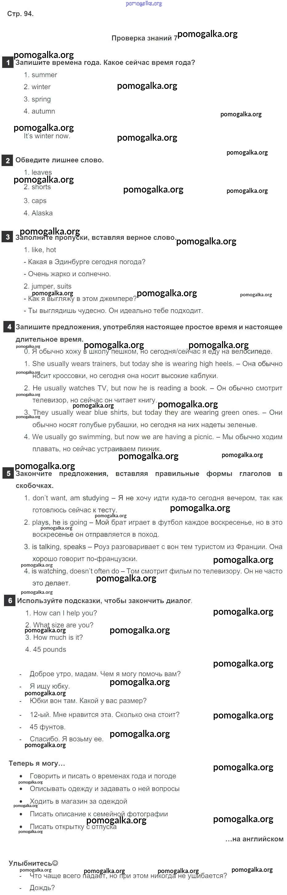 Готовые ответы - Английский язык 5 класс Spotlight Ваулина Ю.Е. - module 7 стр. 94