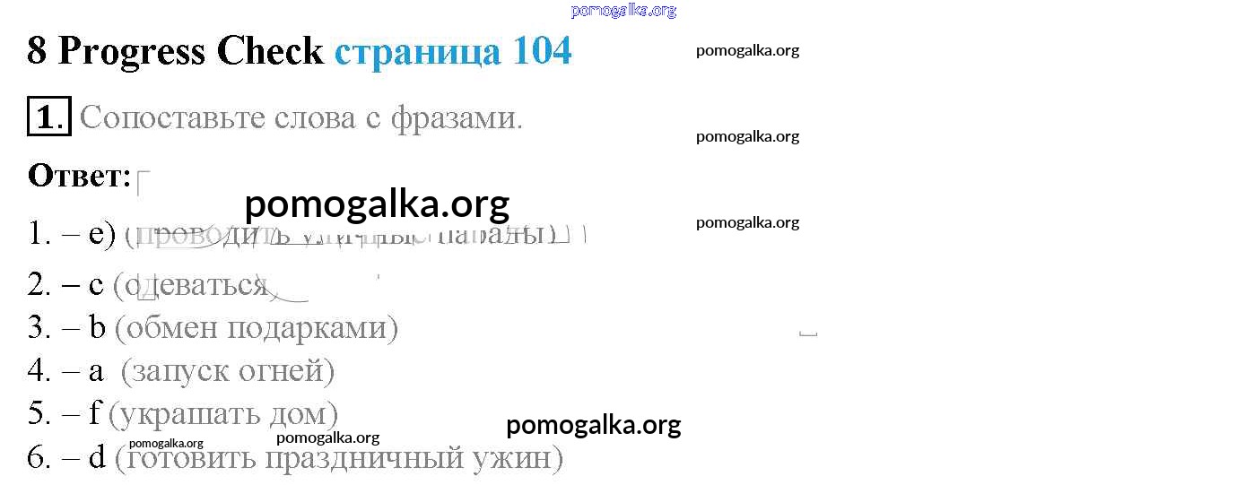 Готовые ответы - Английский язык 5 класс Spotlight Ваулина Ю.Е. - module 8 стр. 104