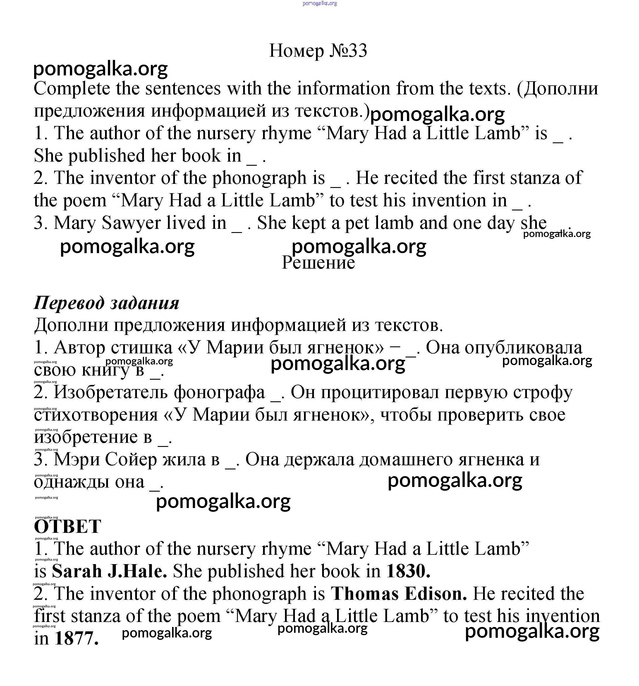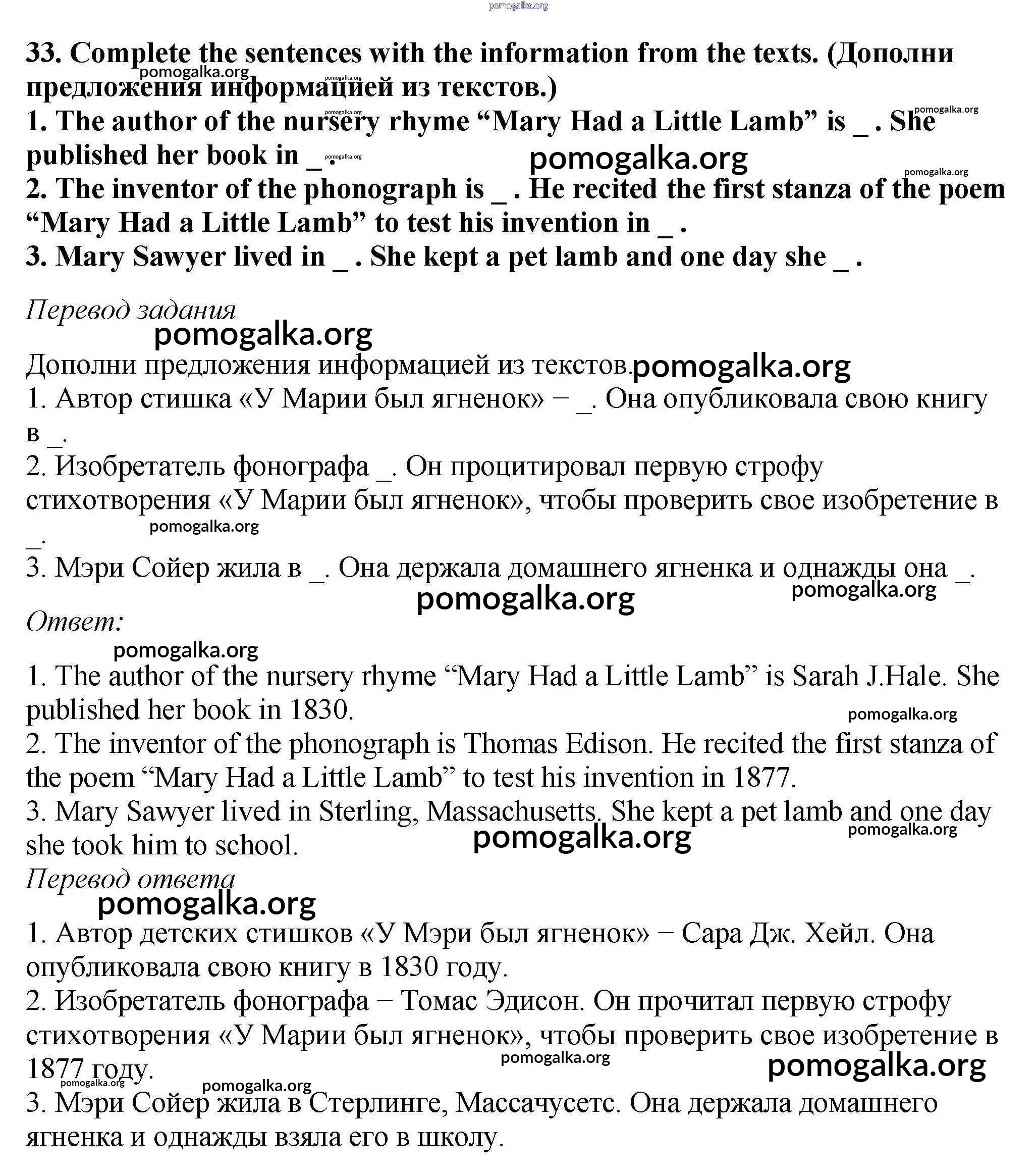 Готовые ответы - Английский язык 5 класс Вербицкая М.В. - unit 1 33