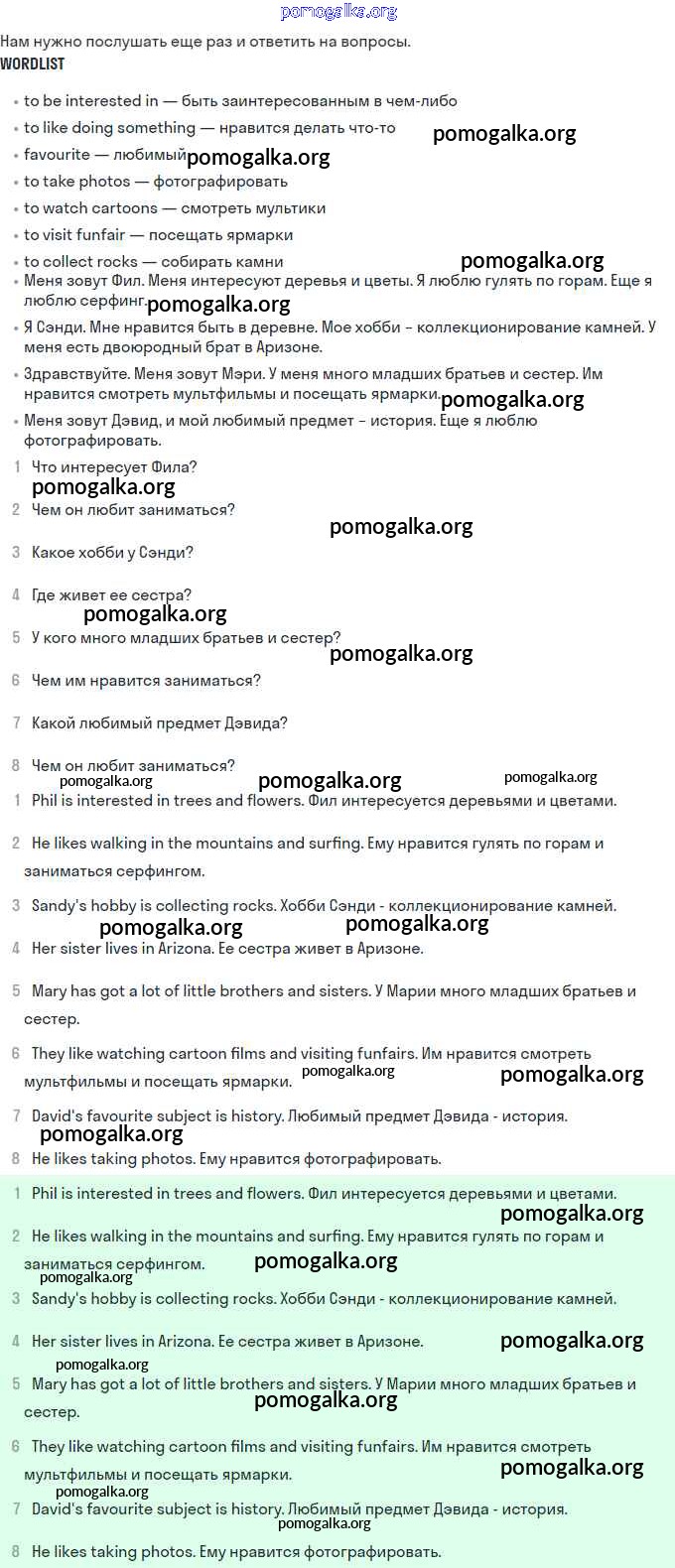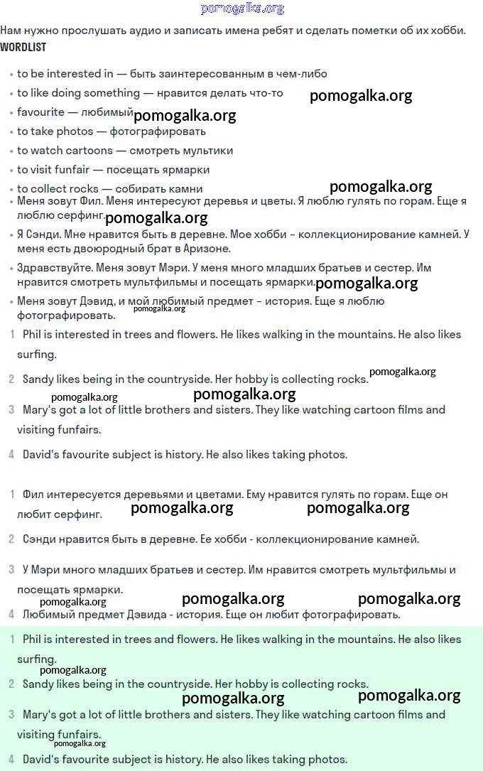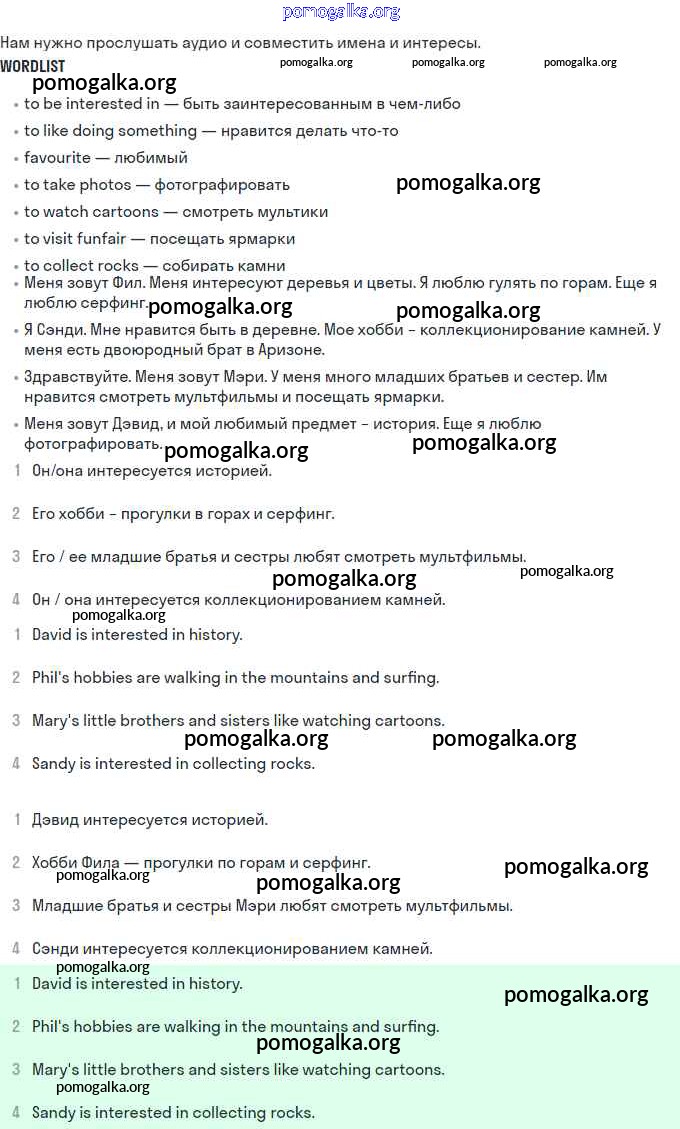 Unit 10. Interests and hobbies. №1-40