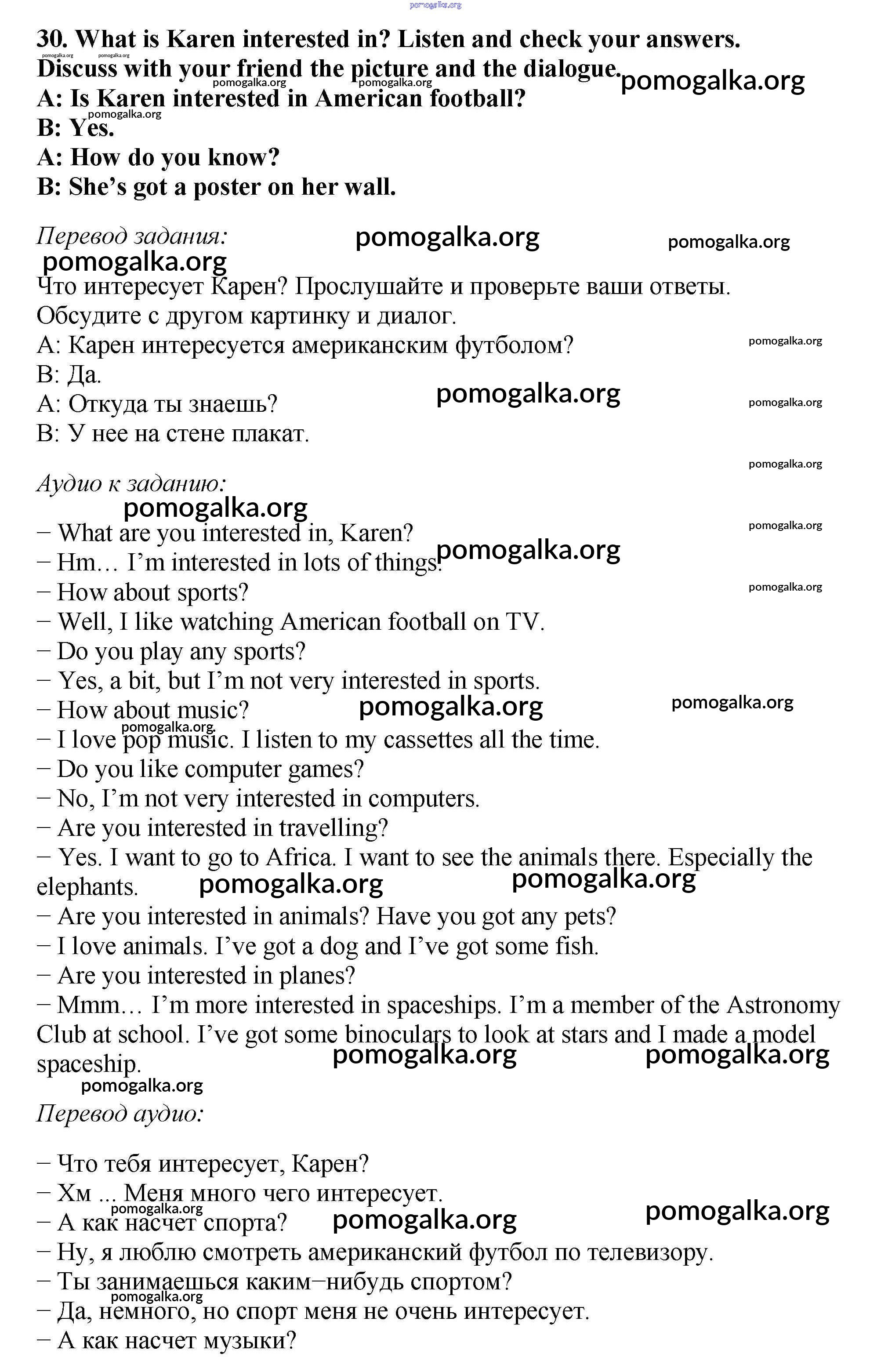 Готовые ответы - Английский язык 5 класс Вербицкая М.В. - unit 10 30