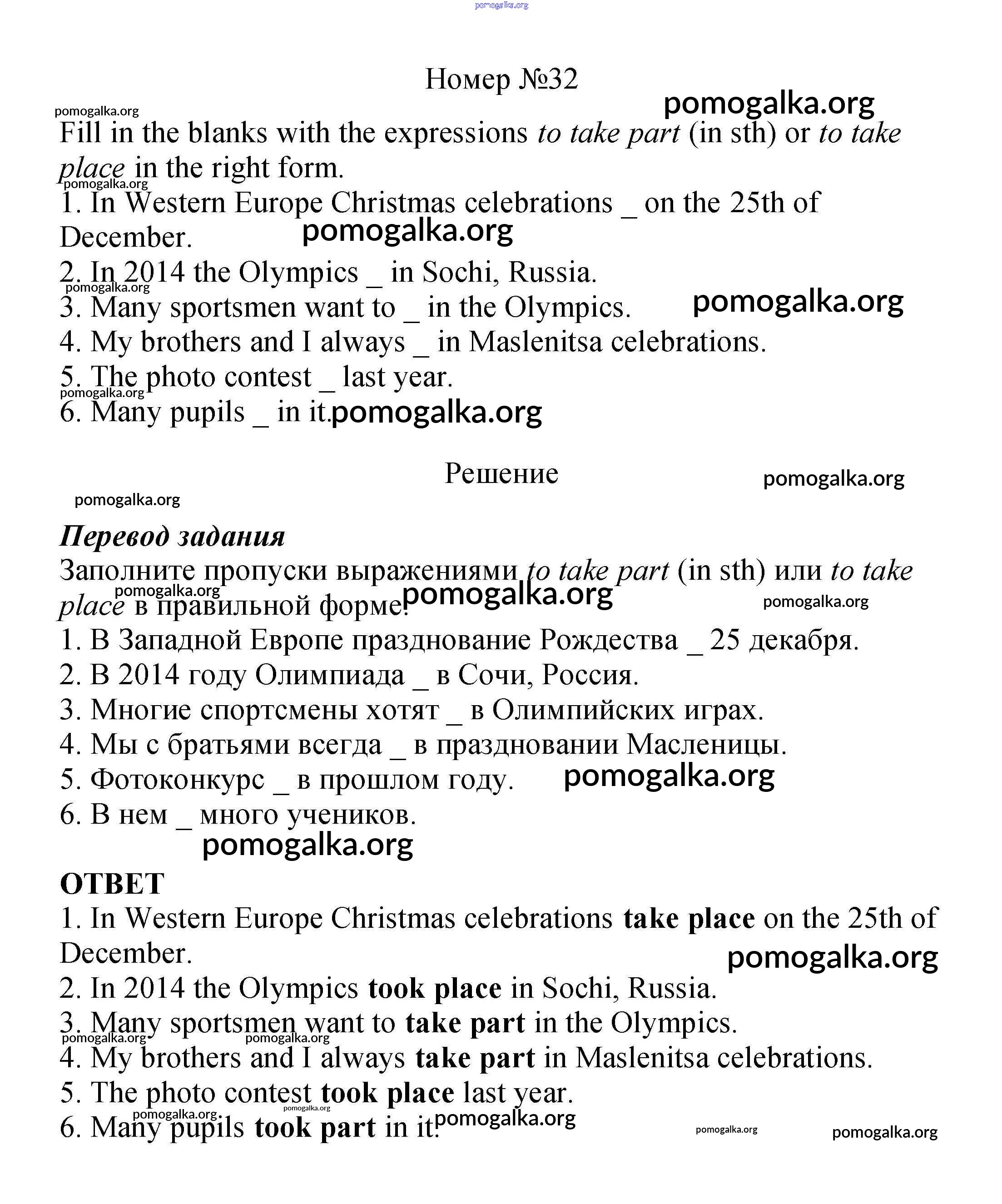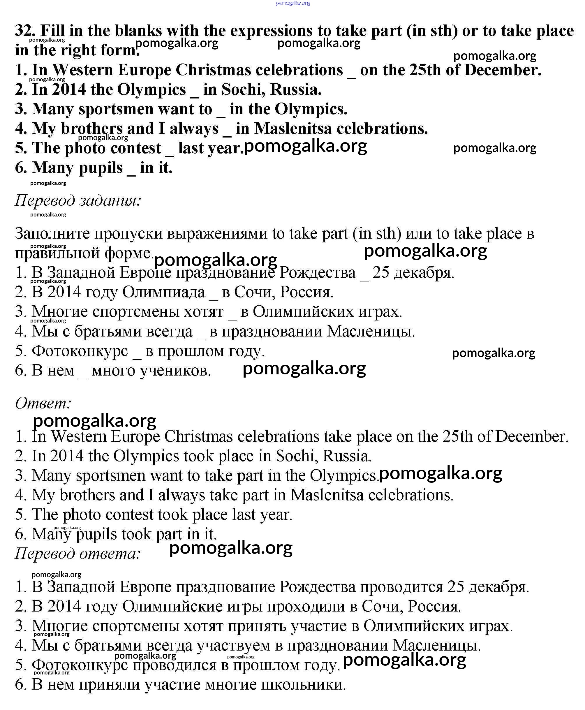 Готовые ответы - Английский язык 5 класс Вербицкая М.В. - unit 12 32