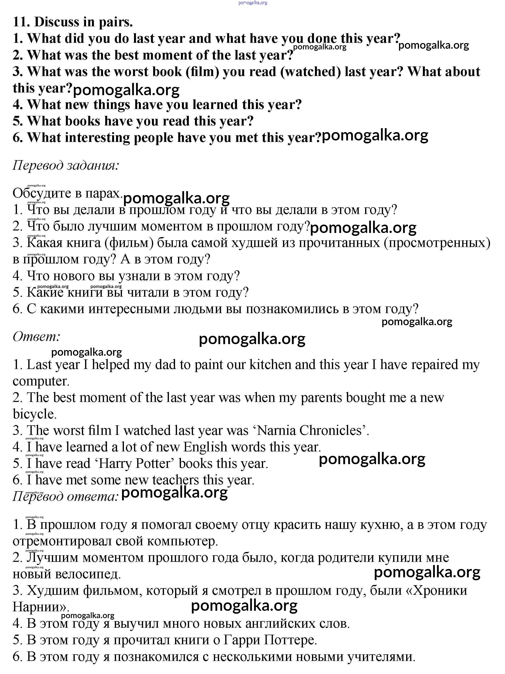 Готовые ответы - Английский язык 5 класс Вербицкая М.В. - consolidation 4 11