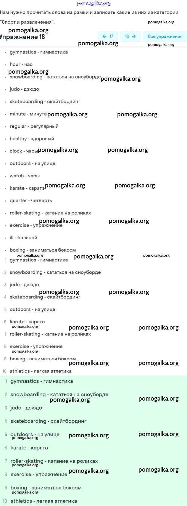 Готовые ответы - Английский язык 5 класс рабочая тетрадь Rainbow English Афанасьева О.В. - unit 3 18