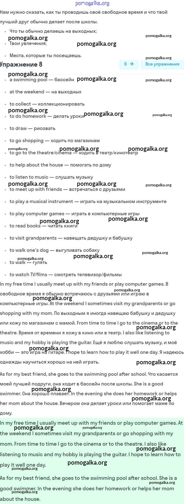 Готовые ответы - Английский язык 5 класс рабочая тетрадь Rainbow English Афанасьева О.В. - unit 4 8