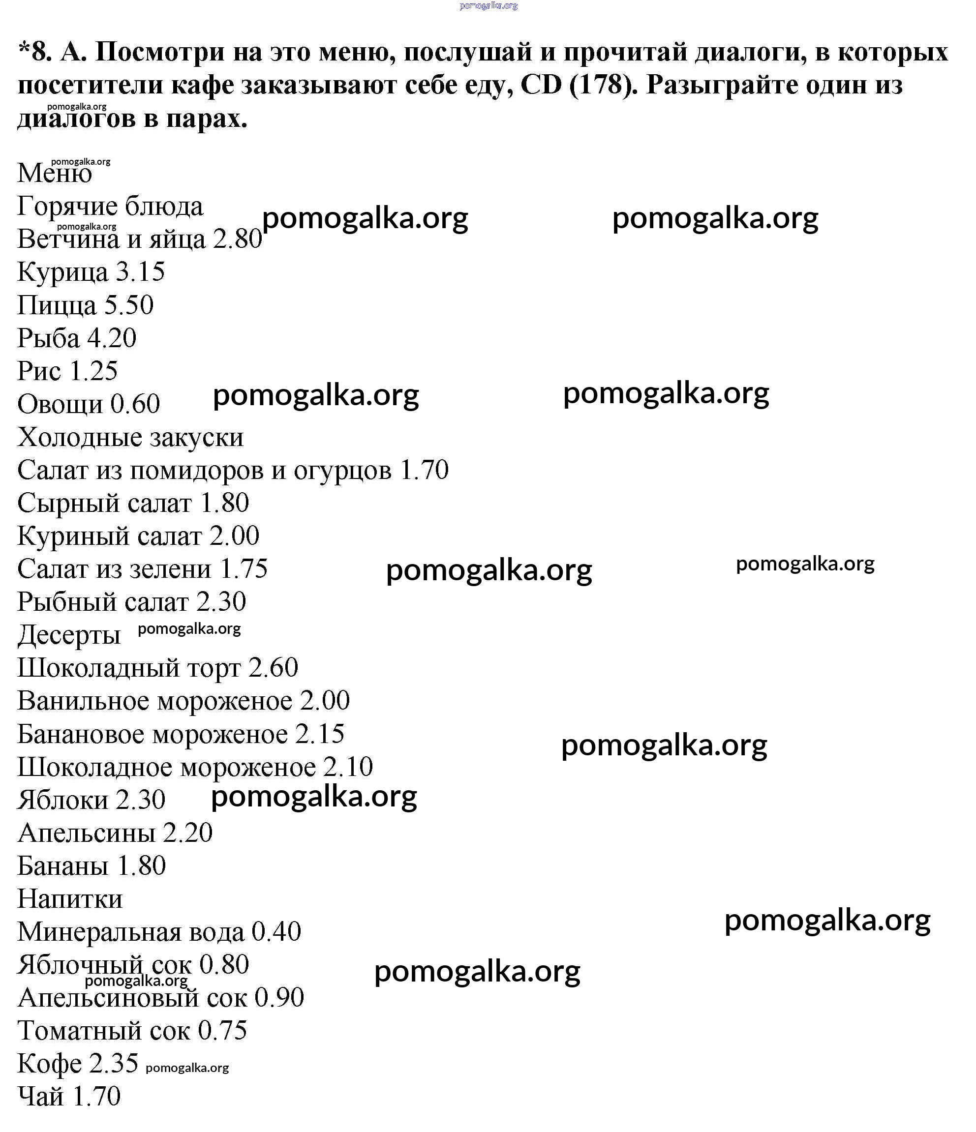 Готовые ответы - Английский язык как второй иностранный 6 класс Афанасьева О.В. - step 4 unit 6 8