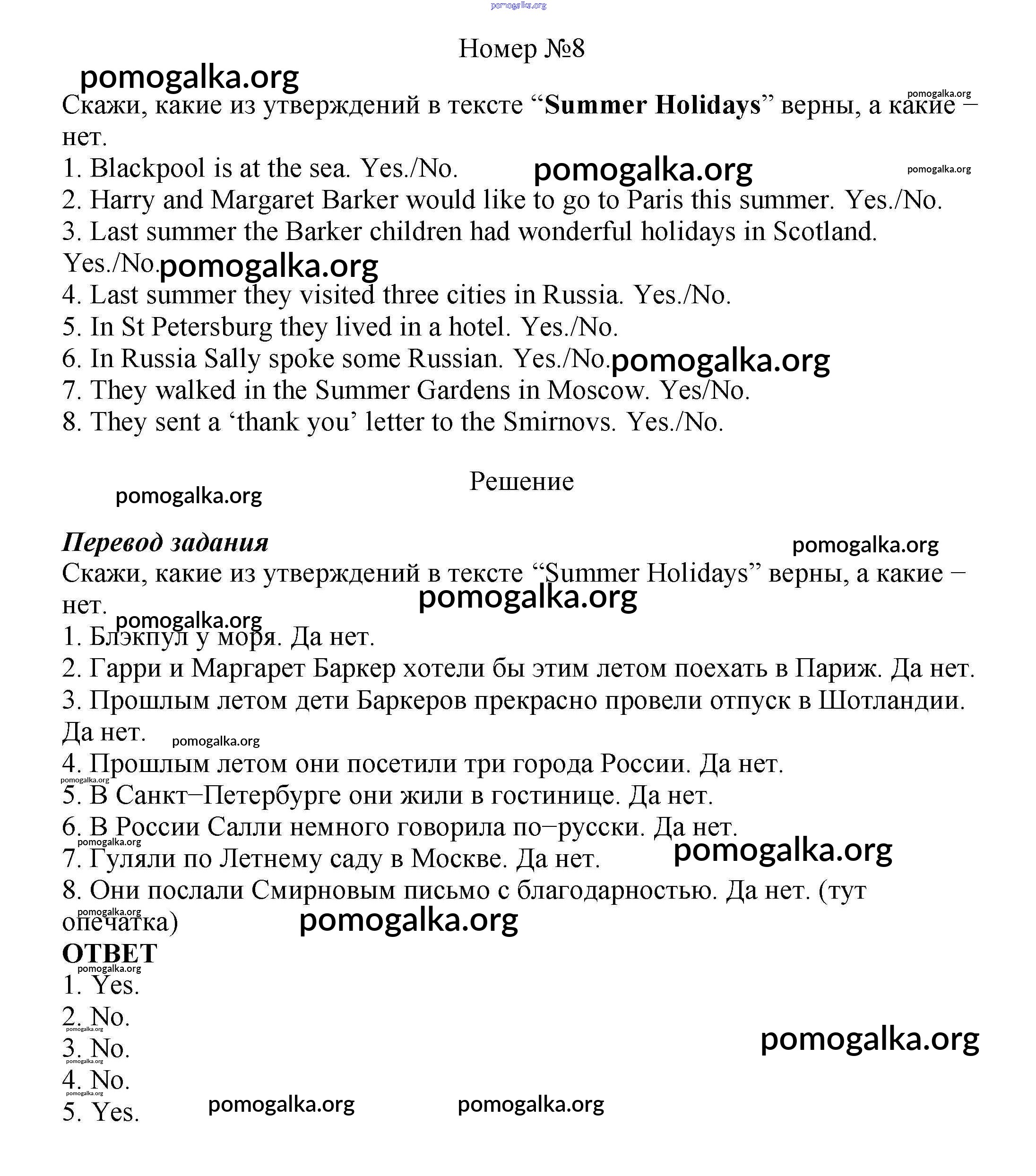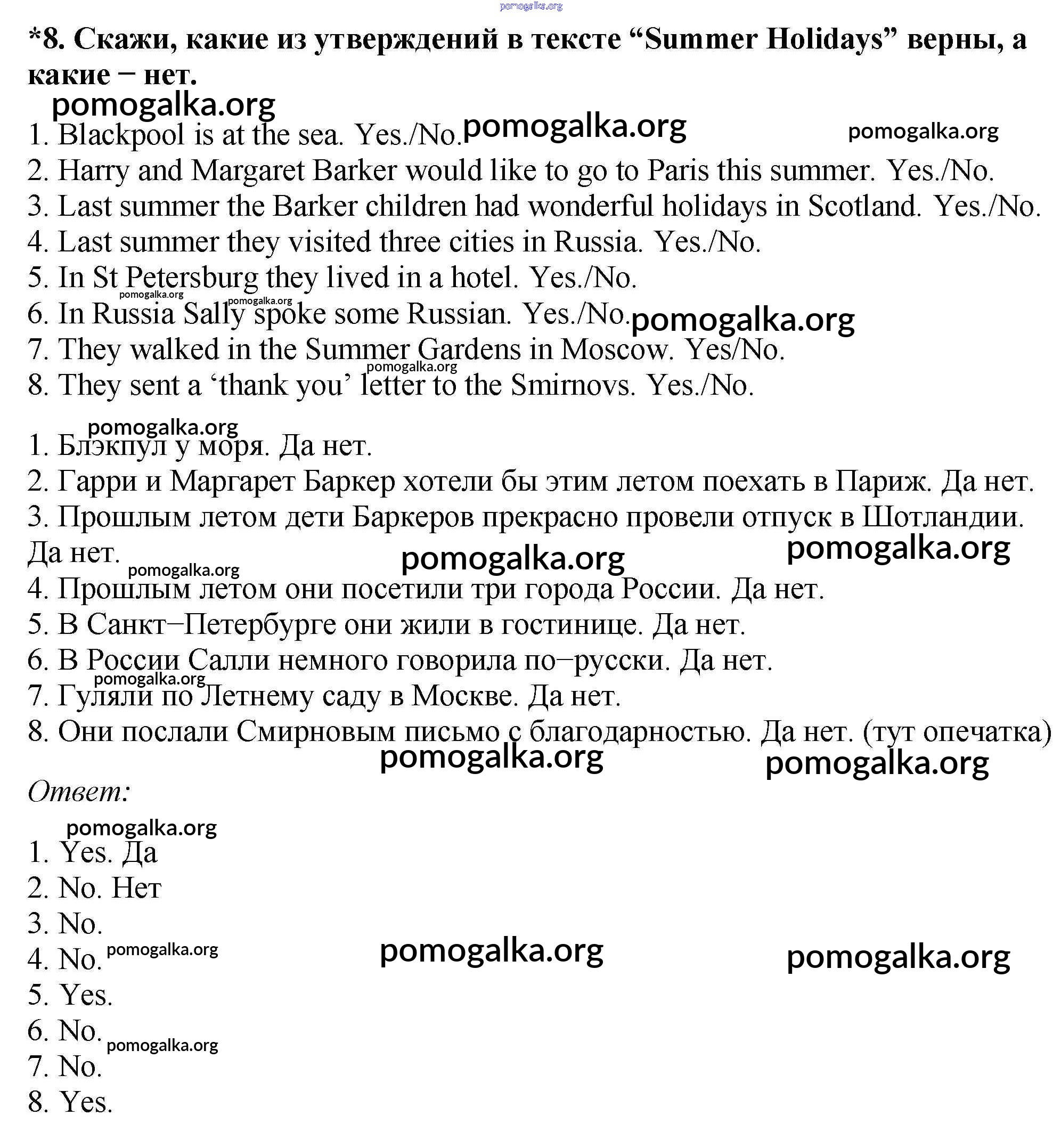 Готовые ответы - Английский язык как второй иностранный 6 класс Афанасьева О.В. - step 3 unit 8 8
