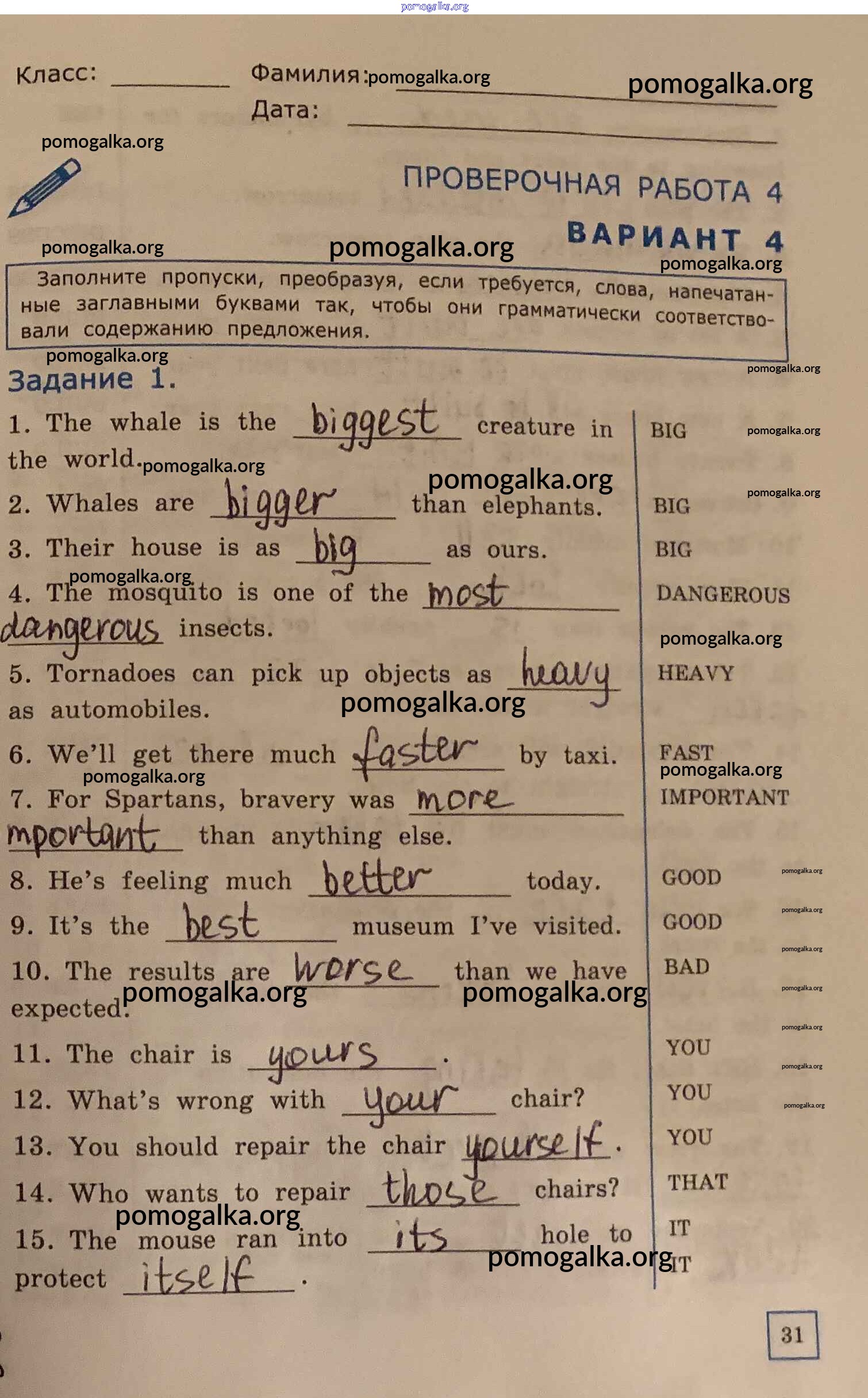 Готовые ответы - Английский язык. Грамматика английского языка 6 класс проверочные работы Барашкова Е.А. (к уч. Афанасьевой) - ПР-4 4