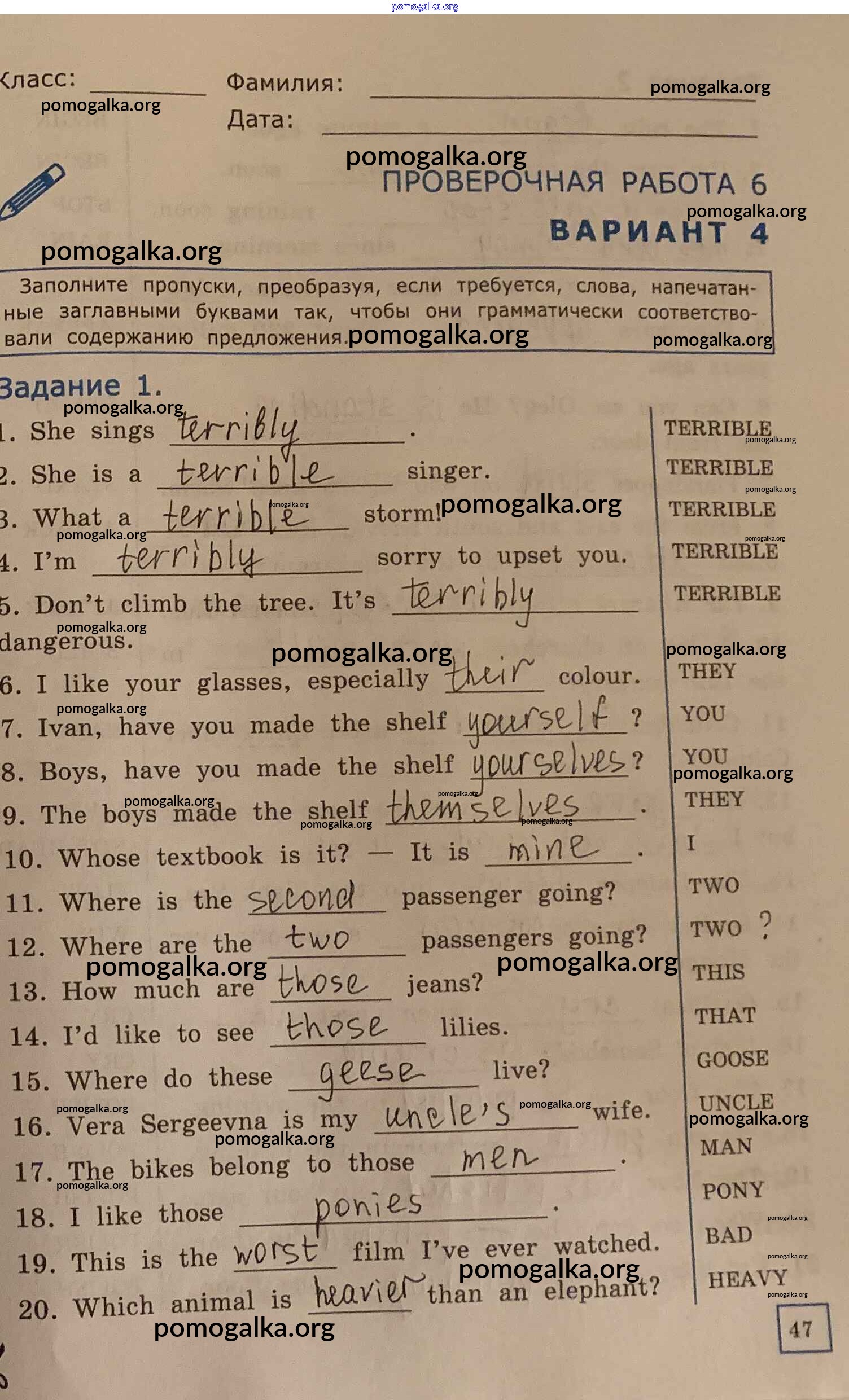 Готовые ответы - Английский язык. Грамматика английского языка 6 класс проверочные работы Барашкова Е.А. (к уч. Афанасьевой) - ПР-6 4