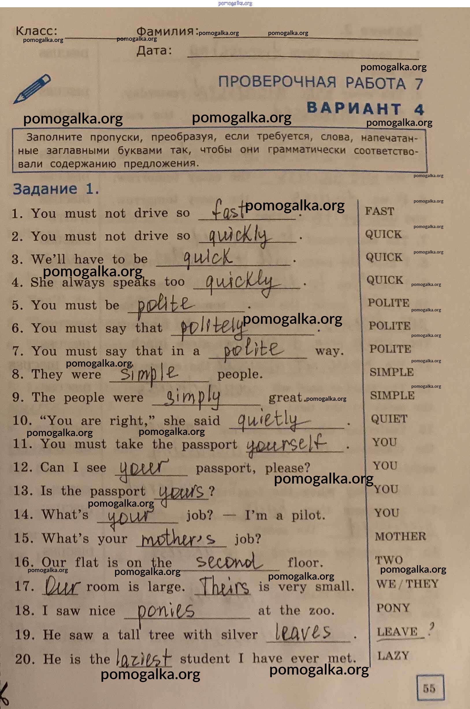 Готовые ответы - Английский язык. Грамматика английского языка 6 класс проверочные работы Барашкова Е.А. (к уч. Афанасьевой) - ПР-7 4
