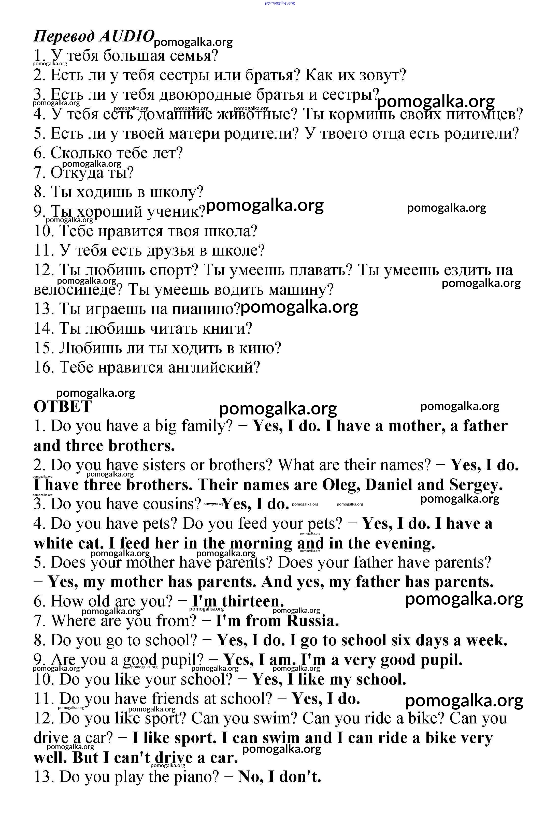 Готовые ответы - Английский язык как второй иностранный 6 класс рабочая тетрадь Афанасьева О.В. - unit 2 4