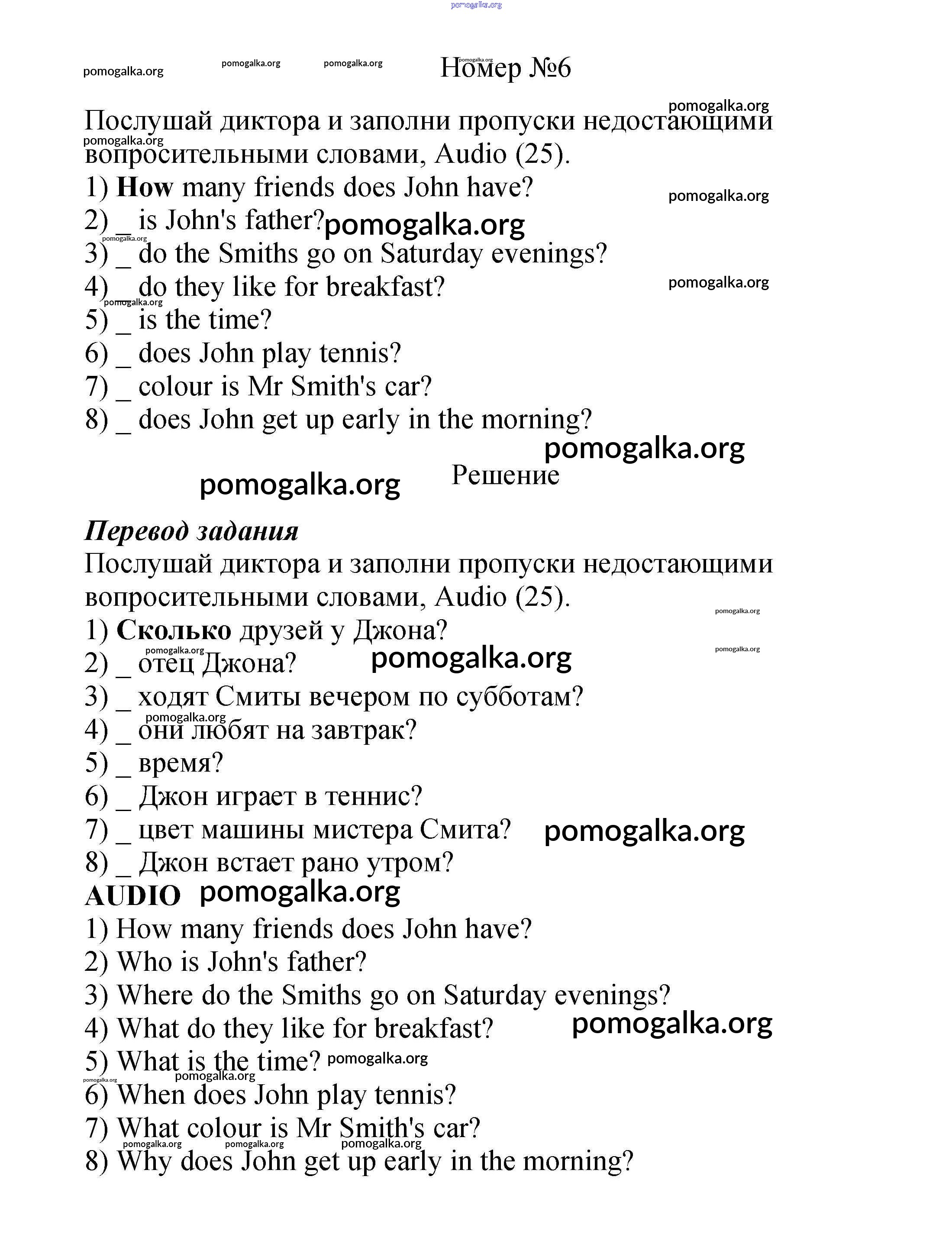 Готовые ответы - Английский язык как второй иностранный 6 класс рабочая тетрадь Афанасьева О.В. - unit 3 6