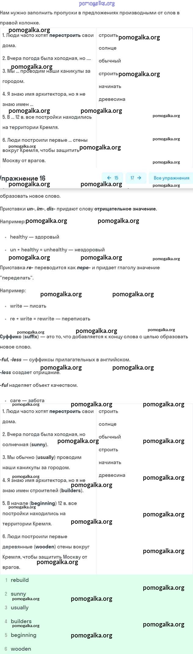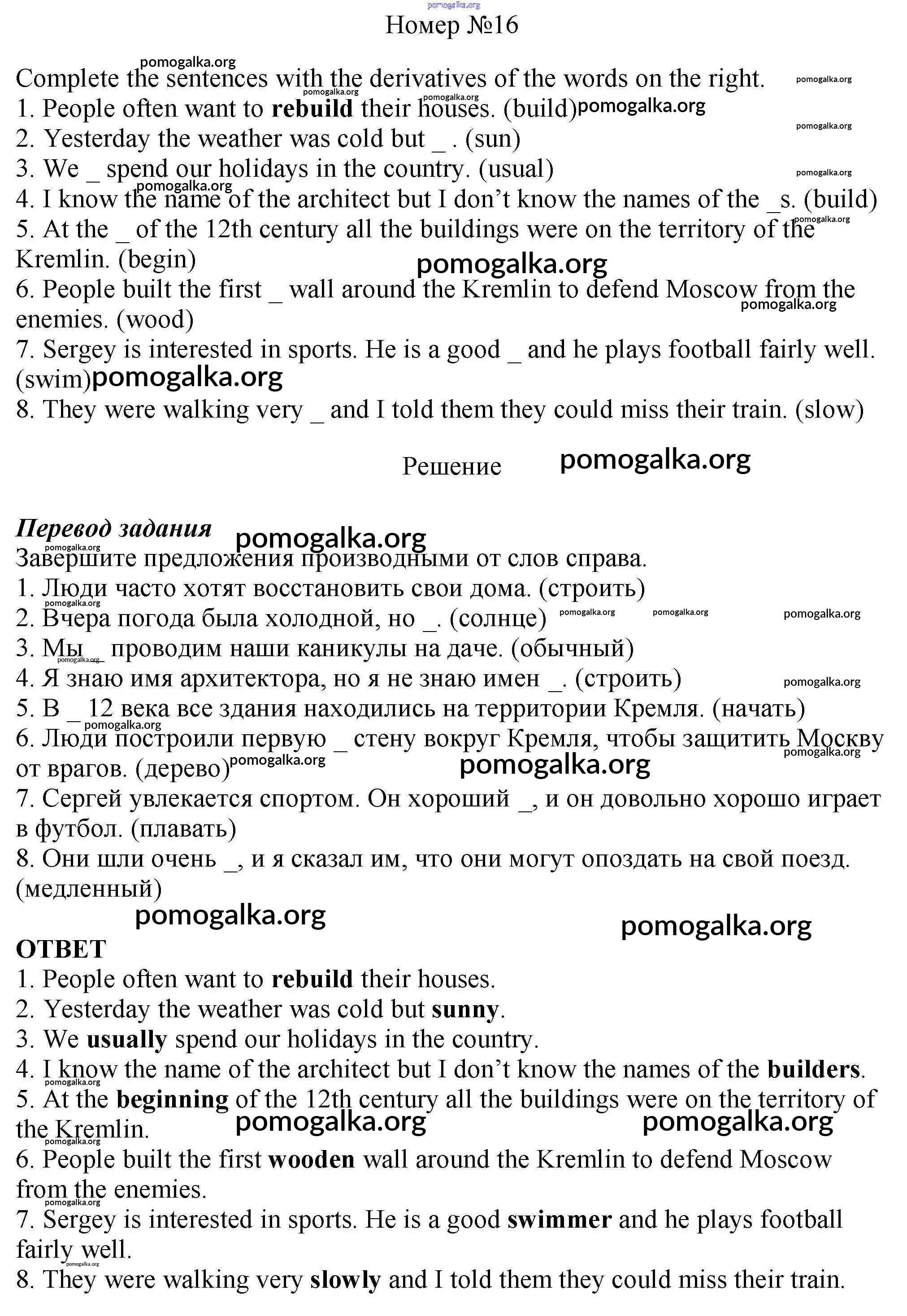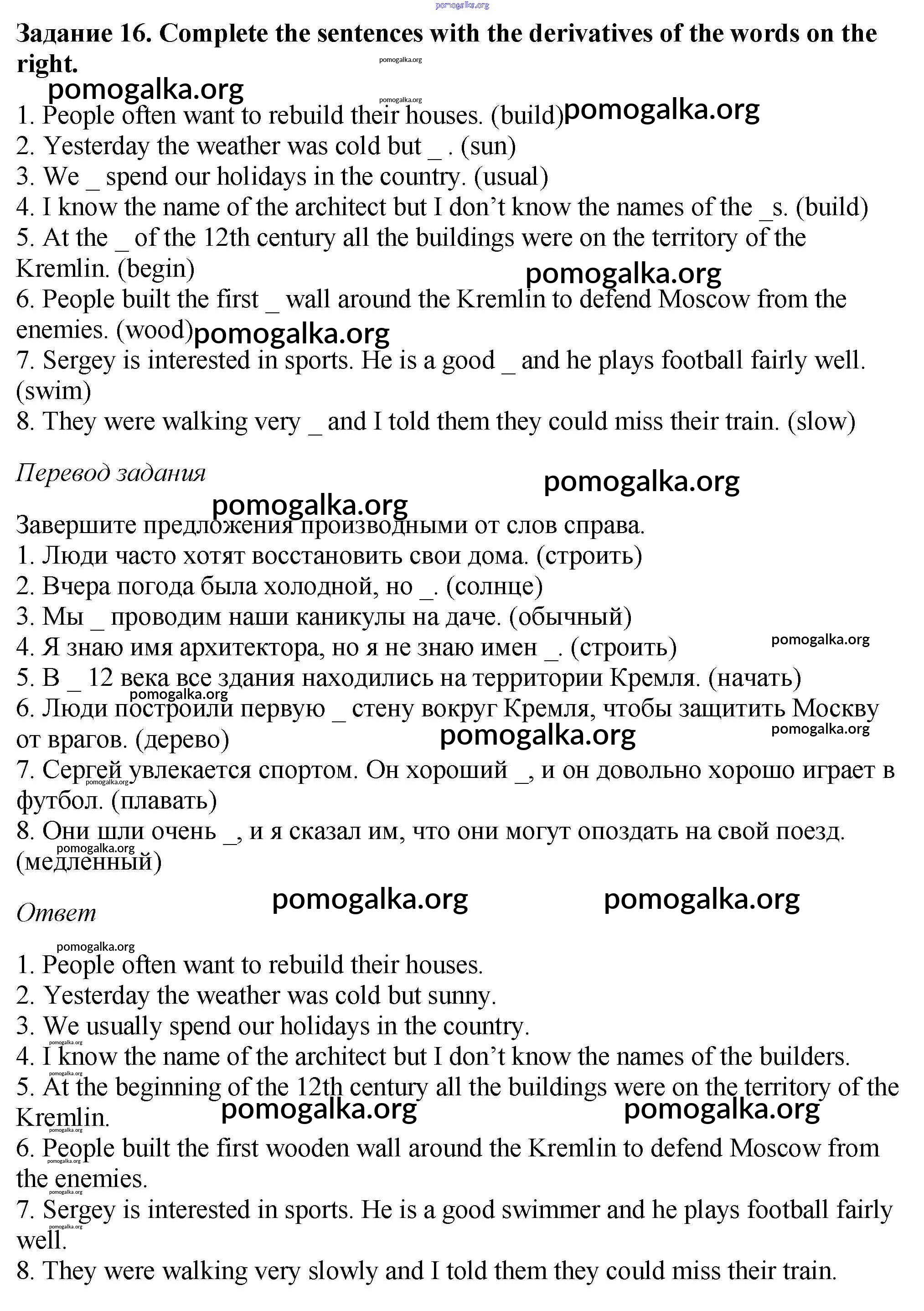 Готовые ответы - Английский язык 6 класс рабочая тетрадь Rainbow Афанасьева О.В. - unit one 16
