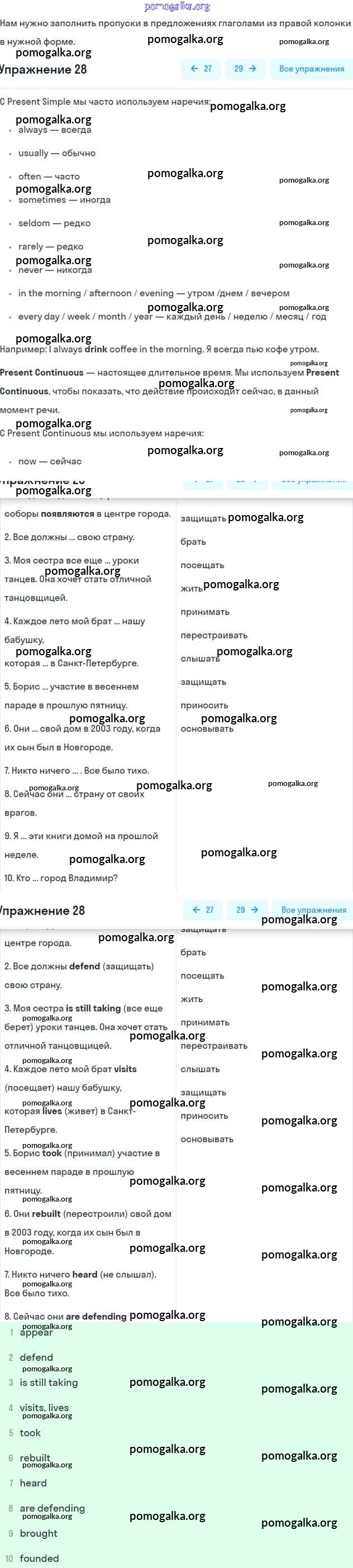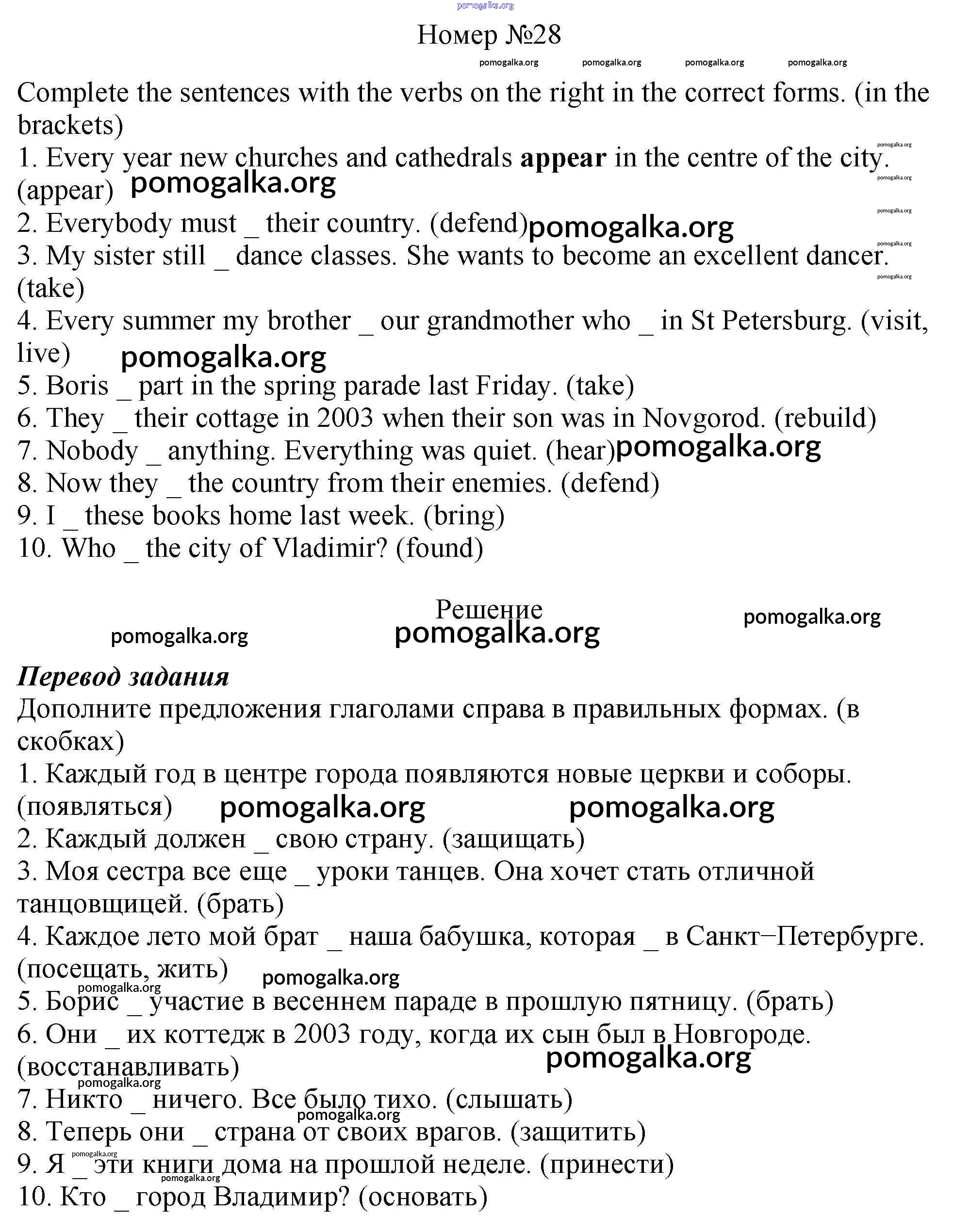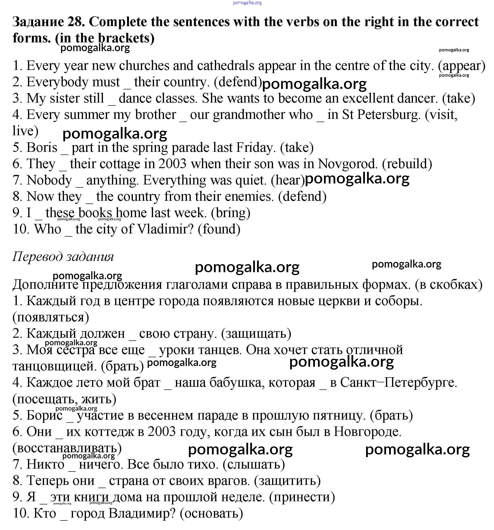 Готовые ответы - Английский язык 6 класс рабочая тетрадь Rainbow Афанасьева О.В. - unit one 28