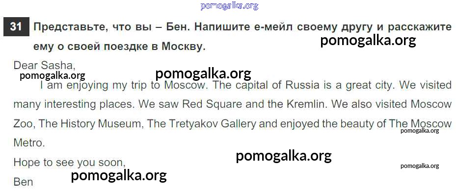 Готовые ответы - Английский язык 6 класс рабочая тетрадь Rainbow Афанасьева О.В. - unit one 31