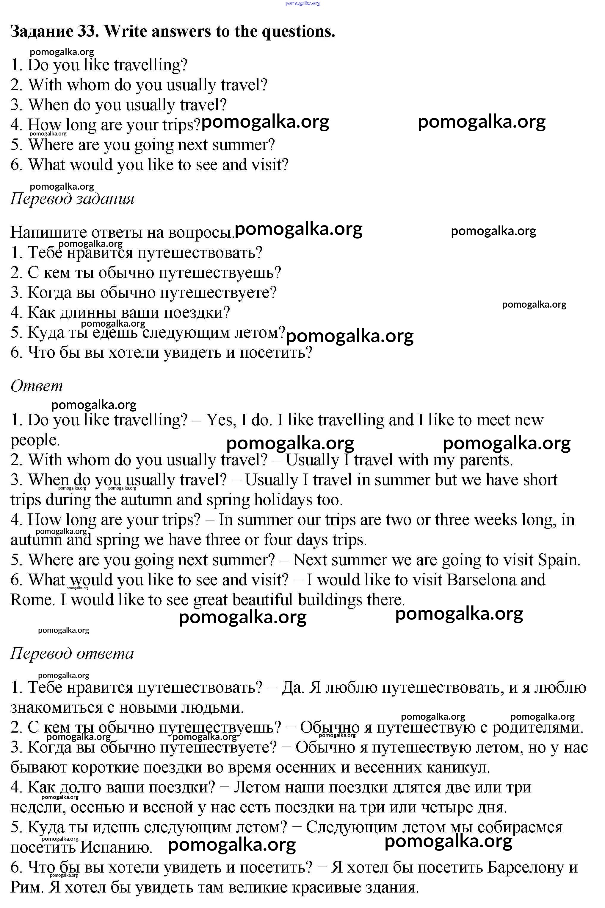 Готовые ответы - Английский язык 6 класс рабочая тетрадь Rainbow Афанасьева О.В. - unit one 33
